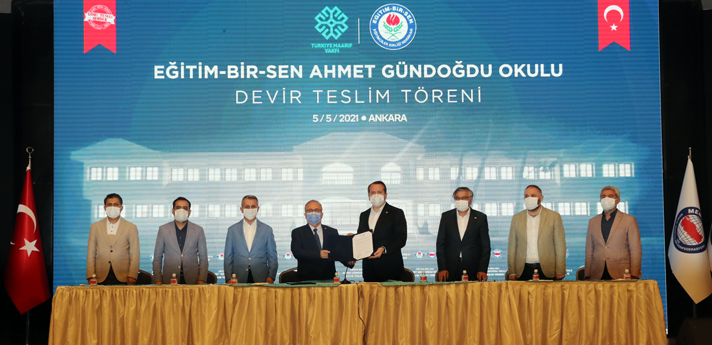 Eğitim-Bir-Sen olarak, 31/08/2018 tarihinde düzenlediğimiz uluslararası “Küreselleşme, Eğitim ve Sendikalar” sempozyumu kapsamında Türkiye Maarif Vakfı ve Millî Eğitim Bakanlığı ile uluslararası eğitim ve iş birliği protokolü imzalamıştık. Çobanbey/Suriye’de bulunan “Eğitim-Bir-Sen Ahmet Gündoğdu Okulu”nun inşaatı tamamlandı.