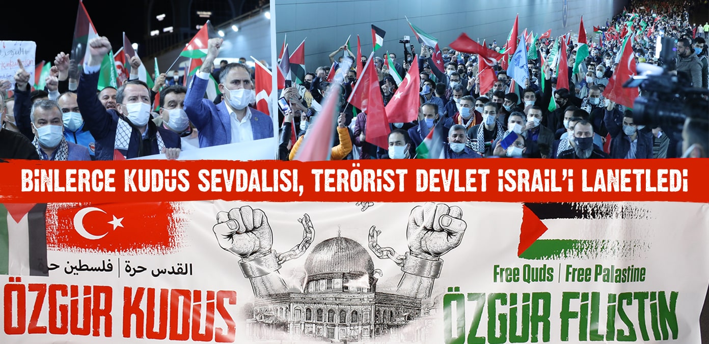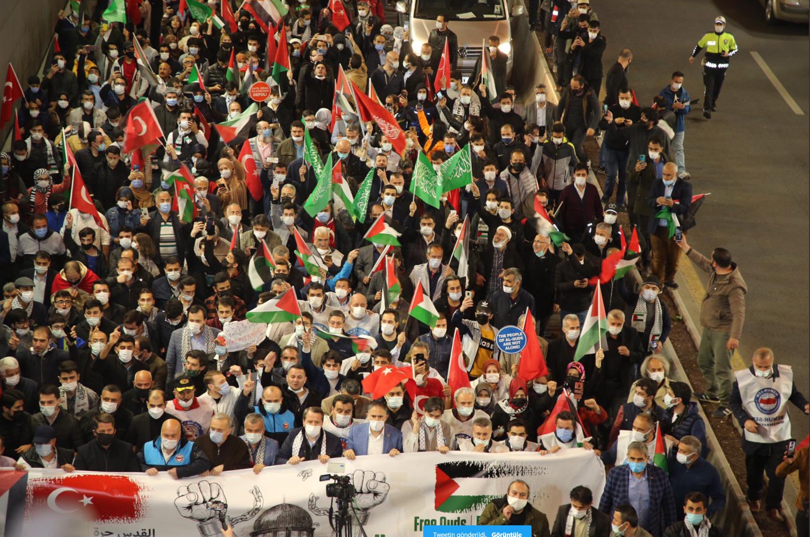 İnsan olmanın asgari şartını yerine getirmek için toplandıklarını ifade eden Yalçın, sözlerini şöyle sürdürdü: “Evet, insan olmanın asgari şartı, bugün bu meydanda toplanmaktır. İsrail’in vahşetini, işgalini, zulmünü, zorbalığını bitirmek için haykırmaktır. Evet, insan olmanın asgari şartı, Mescid-i Aksa’da Siyonist postaldan rahatsız olmaktır. Koronavirüsü stratejik aparata dönüştüren, insanlığın bu zayıf anında hayâsızca ilk kıblemiz Mescid-i Aksa’ya saldıran İsrail’in terörist vasfını ilan, yaptıklarını telin etmek asgari gerekliliktir. İsrail’in işgaliyle birlikte dünyanın kirli düzenine de karşı çıkmak gerek. İsrail vahşetiyle birlikte sömürü zihniyetine de son vermek için direnmek gerek. Biz biliyoruz ki, ABD ve sistemin egemenleri, İsrail’in kan değirmenine su taşıyor. Biz biliyoruz ki, küresel medya ağı da uluslararası kuruluş kulvarı da, uluslararası hukuku yalanı da İsrail’e karşı üç maymunu oynarken, İsrail için güç kaynağı hâline geliyor. Biz susmazsak, biz vazgeçmezsek, biz direnmeye devam edersek, biz hep birlikte söz söylersek İsrail yıkılacak, Filistin kurtulacak; Siyonizm de, işgal de, zulüm de bitecek. İsrail, Mescid-i Aksa’da yıkılışına yürüyor. İsrail, Mescid-i Aksa’da yok oluşuna yürüyor. İsrail’in yıkılışını da, enkazını da göreceğiz. İsrail’e ses çıkarmayanların, vahşete söz söylemeyenlerin, soysuz siyonizme devlet diyenlerin yüzüne tüküreceğiz.”