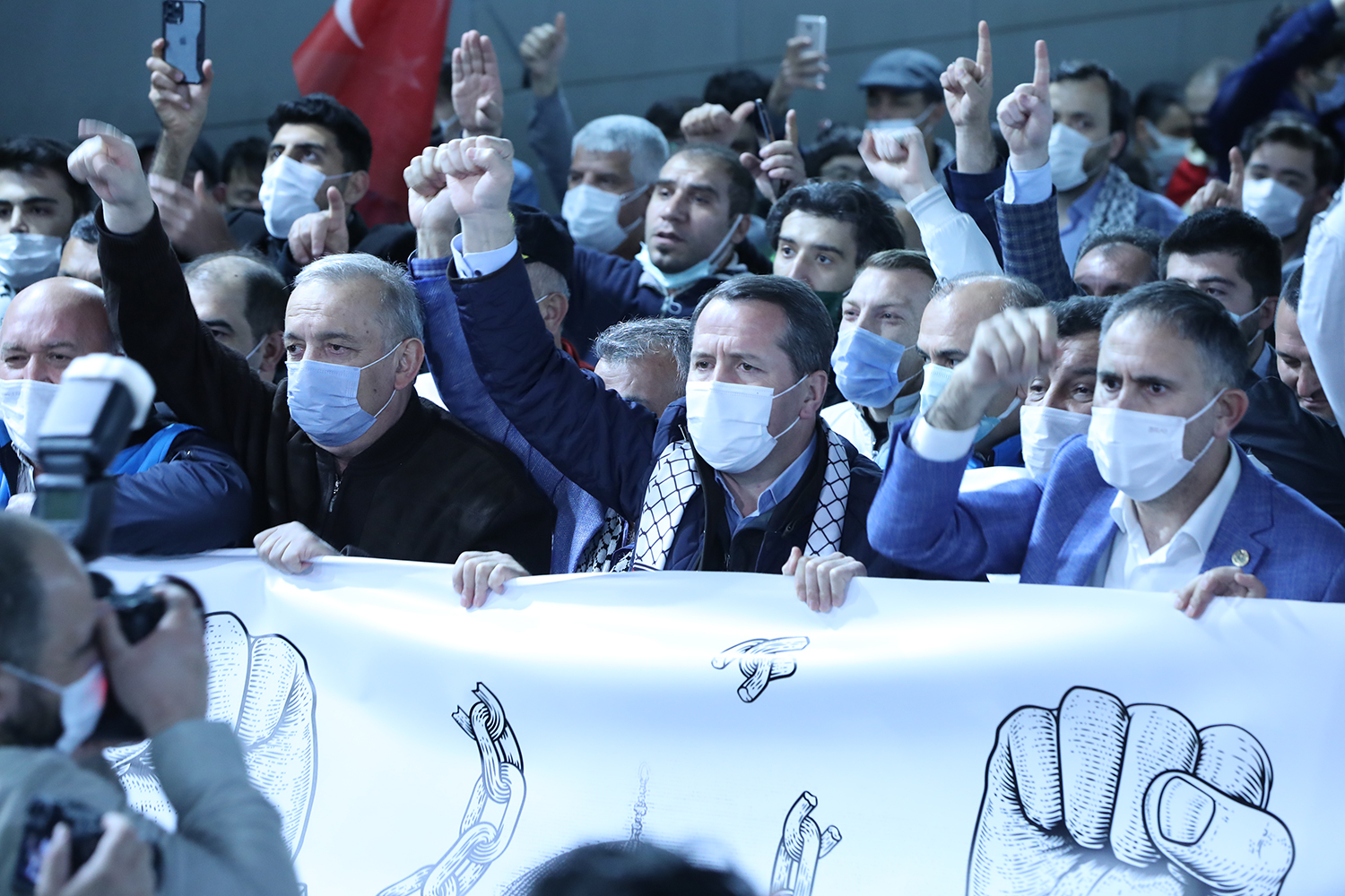 Müslümanların ve dünyanın tüm iyi insanlarının şimdi el ele vermeleri ve ‘sıra bizde’ demeleri gerektiğini belirten Yalçın, “İsrail’i kanıyla, kiniyle ve kiriyle, zulmü ve terörüyle zihinlerimizde reddetmenin, işgalci olduğu coğrafyadan ve sistemlerden defetmenin vaktidir. Filistinli çocuğun gözünden düşen bir damla yaş, bugün insanlığın bütünü için Nuh tufanı hükmündedir. Hepimizi kurtaracak Nuh’un gemisi ise İsrail’e karşı dirayet, Filistin’de, Kudüs’te ve Mescid-i Aksa’da adalet için mücadeledir. Bunun yolu da, hükmü de bellidir: Adı Filistin, başkenti Kudüs, manevi zemini Mescid-i Aksa olan bağımsız ve özgür bir devlettir. Siyonizmin bilindik illüzyonlarına aldırış etmeden, kapitalizm ve emperyalizmin sığınağı söylemlerinin tazyikine kapılmadan bu kutlu mücadeleye devam edeceğiz. Herkes bilsin ve duysun ki, Mescid-i Aksa barış dini İslam’ın ve Müslümanların mabedidir. Herkes bilsin, duysun ve inansın ki, Kudüs, Filistin’dir; Kudüs, İslam şehridir. Kudüs, bütün inançların medeniyet birikimidir ve herkes şunu görecek ki, Filistin, özgür ve bağımsız yaşayacak. Filistin, Siyonist işgalden, Filistinliler Siyonist vahşetten çok yakında azade olacak. Kurucumuz Mehmet Akif İnan ağabeyin satırlarında dercedilen kucaklaşma gerçekleşecek, Mescid-i Aksa’da Siyonist postal izleri temizlenecek, insanlık ve Müslümanlar ve onlara kulak veren devletler hem küresel hem de diplomatik intifada başlatacaklar. Biz buna varız. Kudüs’te adalet, bütün dünyada adalet demektir. Çünkü adaletin düşmanı Siyonizm ve onun beslendiği emperyalizmdir. Mescid-i Aksa özgürleşmeden dünyada özgürlükten bahsedemeyiz. Mescid-i Aksa’dan, Kudüs’ten, Filistin’den tam olarak çıkmadığı sürece İsrail teröristtir, vahşidir ve canidir. Ve son söz, şunu herkes bilsin ve tarih yazsın ki, Mescid-i Aksa’ya yönelik kirli ve kanlı hamlesiyle İsrail yıkılmayı da, yok olmayı da hak etti. İsrail yıkılacak ve Filistin kurtulacak. Yaşasın Filistin, yaşasın Kudüs, yaşasın Mescid-i Aksa; Kudüs onurumuz, Filistin mücadelesi gururumuzdur” diye konuştu.