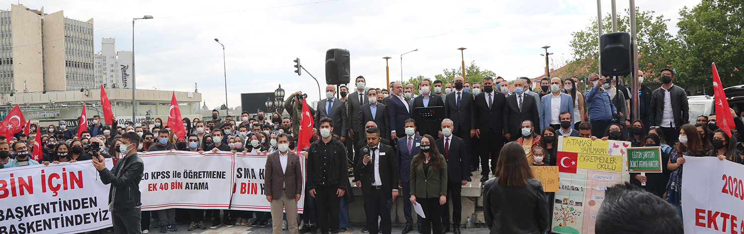 Türkiye’nin dört bir yanından Ankara’ya gelen ve Ulus Meydanı’nda bir araya gelerek ek 40 bin atama taleplerini haykıran atama bekleyen öğretmen adaylarına hitap eden Ali Yalçın, sözlerine, “Ek 40 bin atama için yola revan olanı, umudunu yitirmeyip, duasına gözyaşını katanı, umut güneş açsın diye gözü sizde olanı, KPSS puanı yeterli olduğu hâlde sabahlara kadar yine KPSS’ye çalışanı, masada uykuda kalanı, ‘evladım kendini heder ettin’ diye gözü buğulananı, kilometrelerce yol tepip 81 ili temsilen geleni, Ulus Meydanı’nı bulanı, bu meydandan ‘ek 40 bin atama’ diye haykıranı selamlıyorum” diyerek başladı.