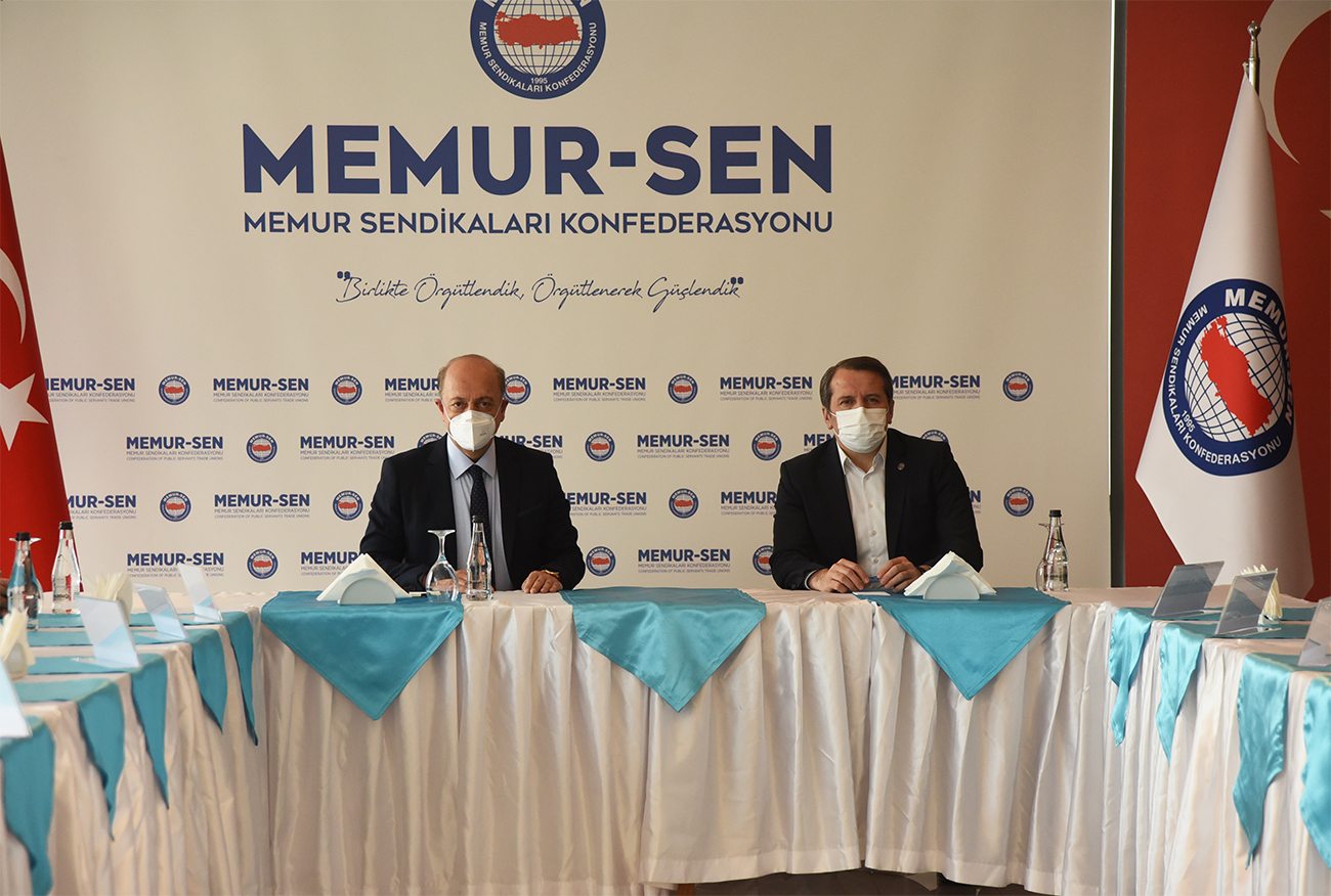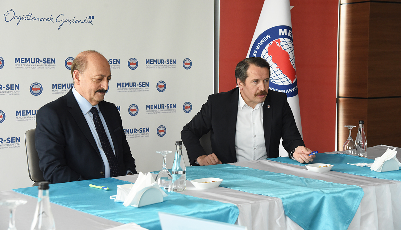 Çalışma ve Sosyal Güvenlik Bakanı Vedat Bilgin, Memur-Sen’i ziyaret etti. Çalışma hayatı, kamu personeli ve mevzuatı, 6. Dönem Toplu Sözleşme kapsamında yapılacak hazırlıklar ve ön çalışmaların ele alındığı görüşmede, 6. Dönem Toplu Sözleşme’de beklentilerin yüksek olduğunu ifade eden Eğitim-Bir-Sen ve Memur-Sen Genel Başkanı Yalçın, “5. Dönem Toplu Sözleşme’de kamu görevlilerinin beklentilerini karşılayan sonuçlar çıkmamıştı. Önümüzdeki toplu sözleşmenin hem kazanımlar hem de süreç açısından beklentileri karşılayan bir toplu sözleşme olmasını ümit ediyoruz. Kamu Görevlileri Sendikaları Heyeti olarak bu toplu sözleşmeden beklentimiz yüksek” dedi.