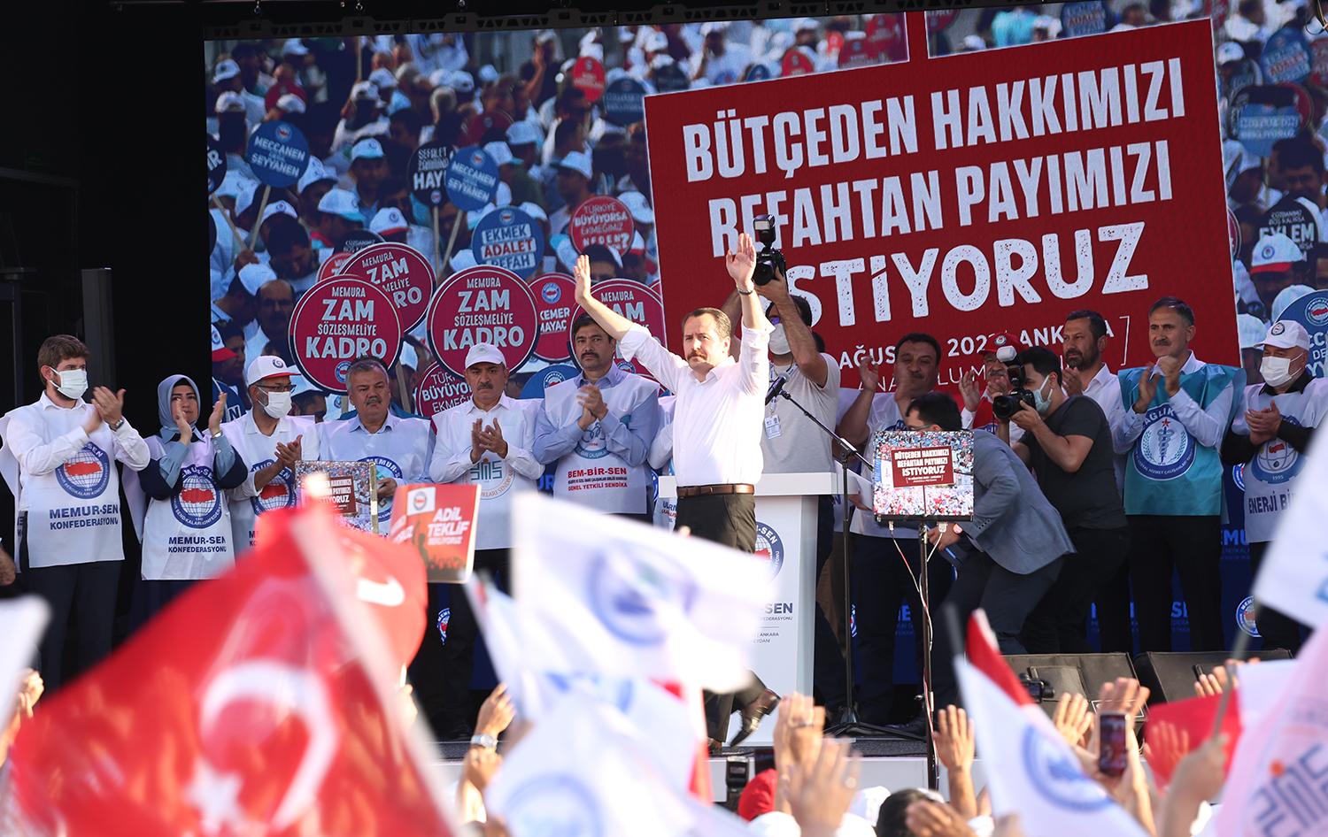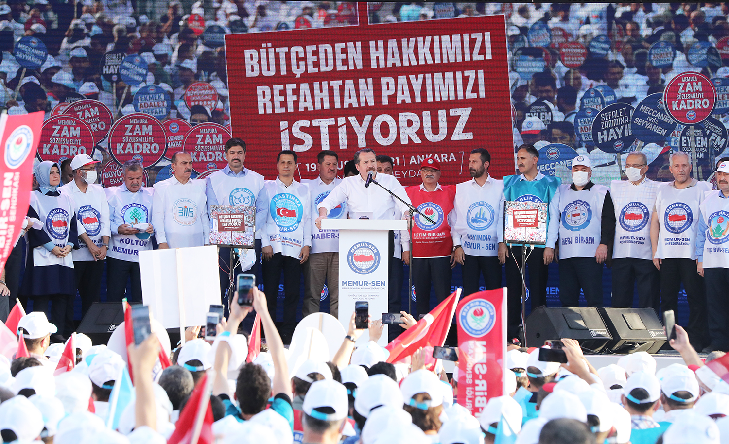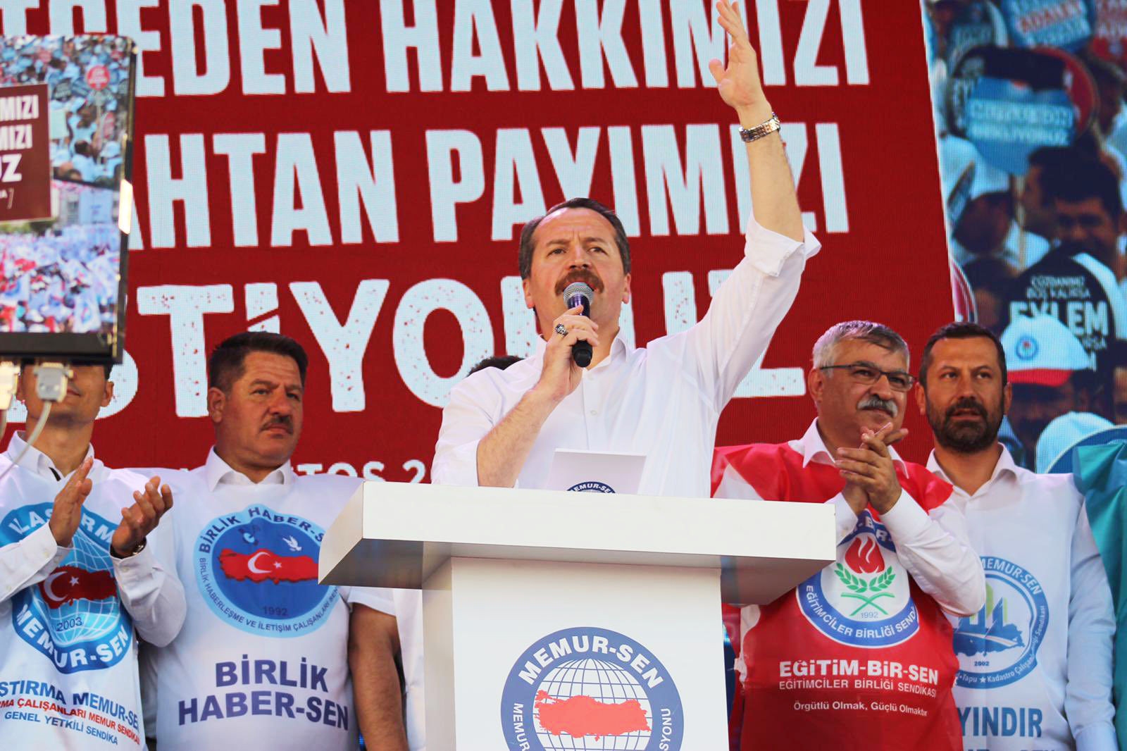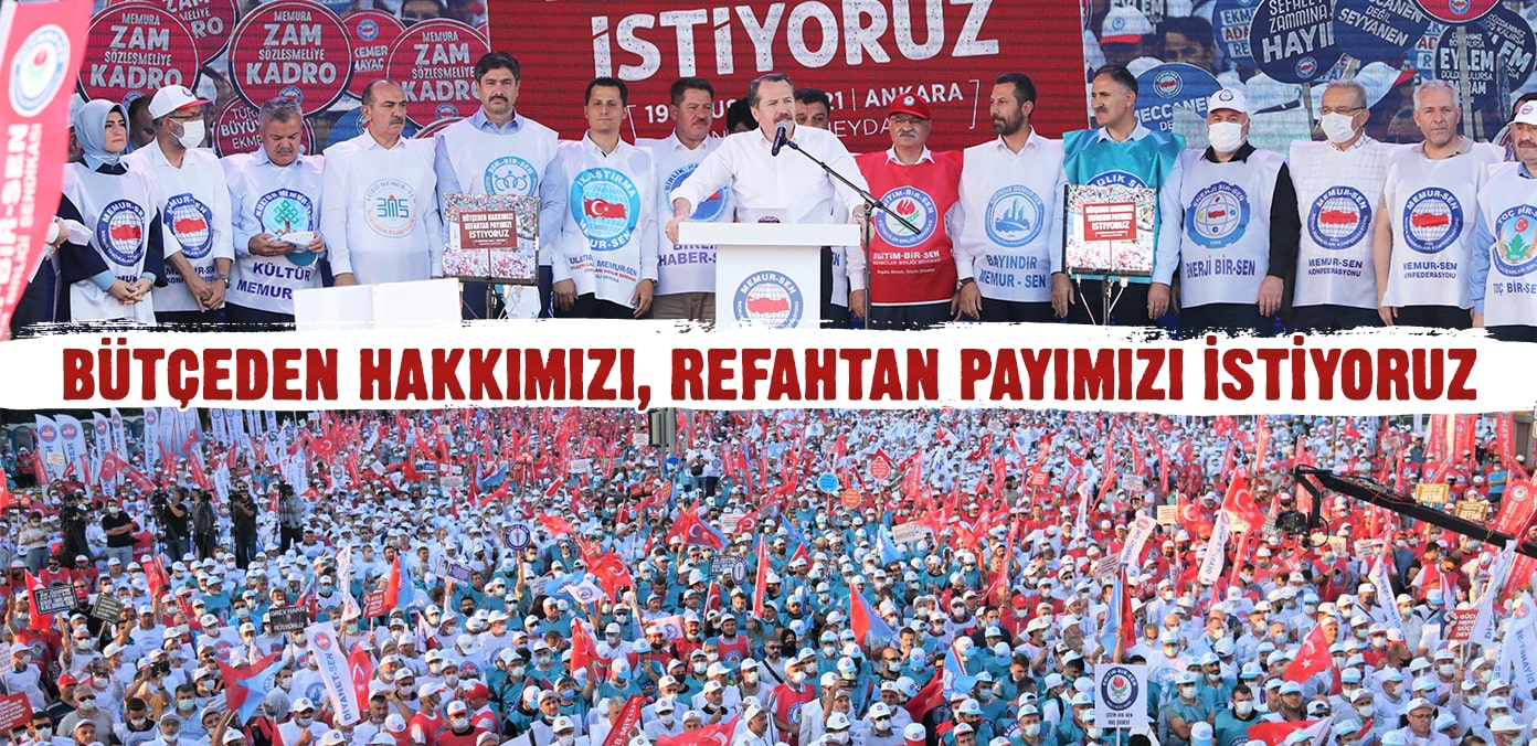 Eğitim-Bir-Sen ve Memur-Sen Genel Başkanı Ali Yalçın, Türkiye’nin gücünün Ankara’da bir araya geldiğini ifade ederek, “Milletimizin hizmetkârı kamu görevlilerimizin haklarını korumanın, hukukunu gözetmenin, maaşlarını yükseltmenin, refahtan pay almasının peşindeyiz. Bugün tam da bunun için buradayız” dedi.
