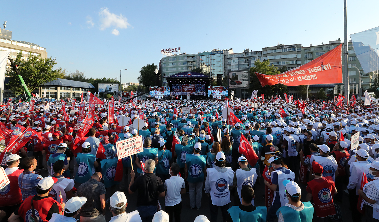 6. Dönem Toplu Sözleşme görüşmeleri devam ederken, hükûmetin ilk teklifini yetersiz bularak yeni ve adil bir teklif beklediğimizi açıklamak için Ankara/Anadolu Meydanı’nda binlerce üyemizle çağrıda bulunduk.