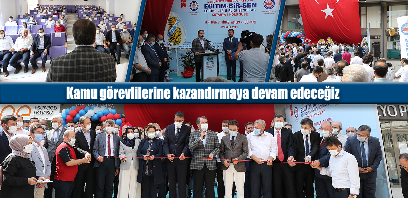 Eğitim-Bir-Sen Kütahya 1 No’lu Şube’nin hizmet binasının açılışına katıldı.Vali Ali Çelik, Milletvekilleri Ceyda Çetin Erenler, İshak Gazel, Ahmet Tan, Memur-Sen’e bağlı sendikaların il temsilcileri ve çok sayıda davetlinin katılımıyla gerçekleştirilen açılışta konuşan Ali Yalçın, Memur-Sen’in 30 yıla yaklaşan tecrübesiyle daima milletin yanında olduğunu, milletle beraber tüm sorunları çözdüklerini vurgulayarak, “Bizim kuruluşumuzun özeldeki amacı üyelerimizin ekonomik, sosyal ve mali haklarını iyileştirmek, özgürlük alanlarını genişletmek ve vesayet gölgesini bu ülkenin üzerinden kaldırabilmektir. Evrensel anlamdaki duyarlılığımız ise dünyadaki gelir dağılımındaki adaletin düzgün olmasını sağlama noktasında gayret ortaya koymak, örgütlü gücümüzle elimizden gelen tüm imkânları seferber etmektir” ifadelerini kullandı.