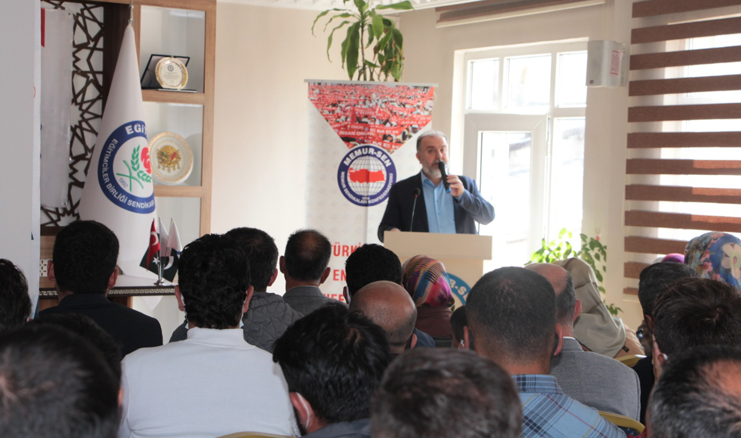 Eğitim çalışanlarına yönelik şiddet olaylarına da değinen Karaman, mevcut düzenlemelerin caydırıcı olmadığının, bilakis şiddeti beslediğinin artık görülmesi gerektiğini ifade ederek, “Sorun üreten bir sistem çare olamaz. Yapılması gereken, medeniyet değerlerimizi merkeze alan bir kültür seferberliğine ve eğitim programına geçmektir. Şu da bilinmelidir ki bir tek sebebi ve kaynağı olmayan şiddet, ancak topyekûn bir duyarlılık ve bilinçle önlenebilir. Sendika olarak haksızlığa uğrayan, şiddete maruz kalan, darbedilen eğitim çalışanlarını yalnız bırakmayacak, faillerin hak ettikleri cezaya çarptırılmaları için elimizden geleni yapacağız” diye konuştu.