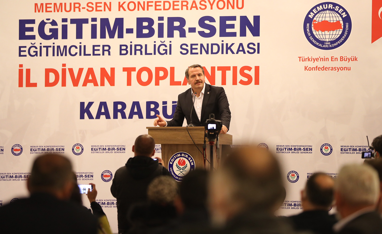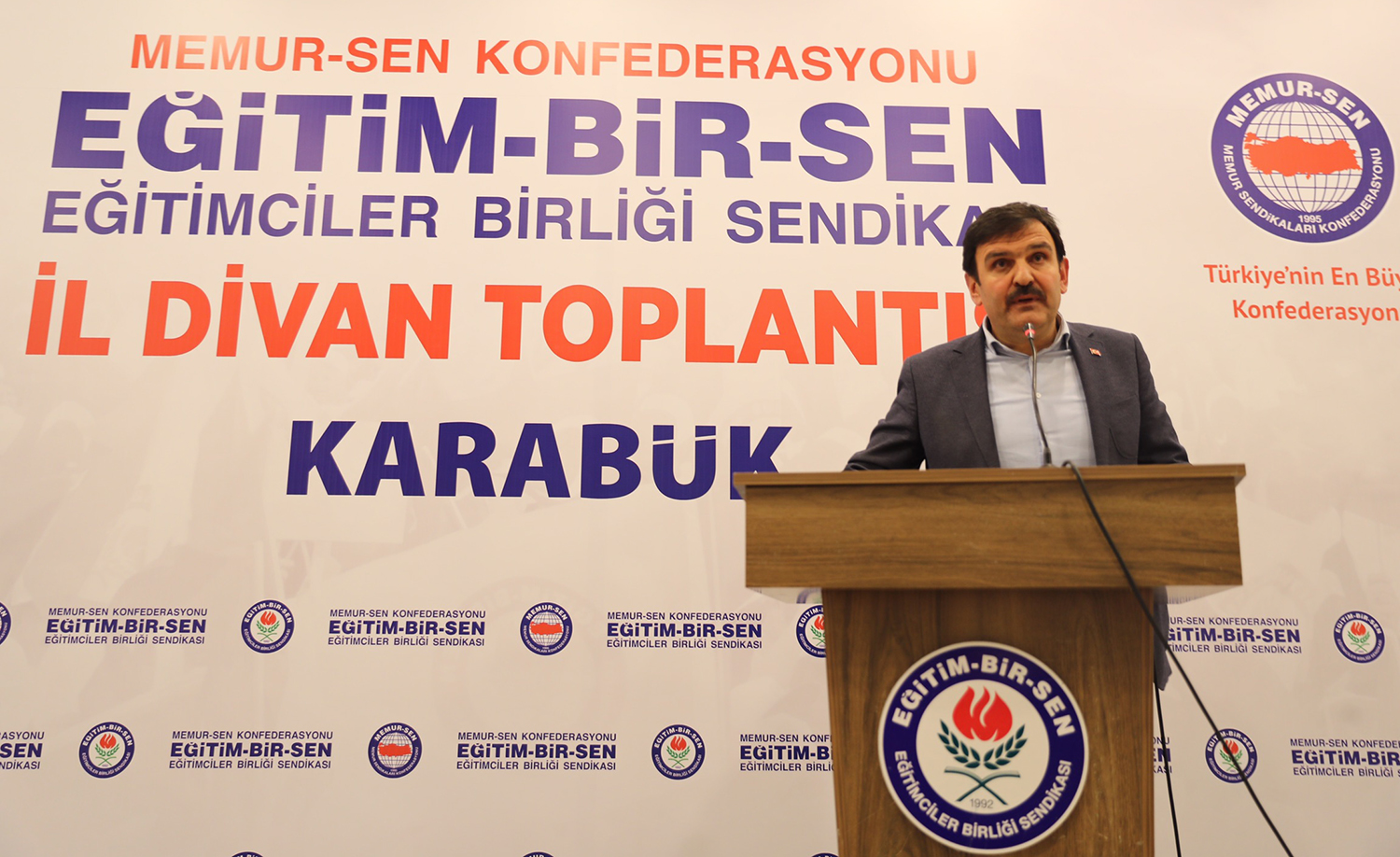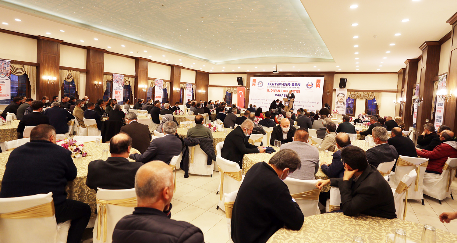 Ali Yalçın, Eğitim-Bir-Sen Karabük Şubesi’nin Safranbolu Sunal Tülbentçi Öğretmenevi’nde gerçekleştirdiği il divan toplantısına katıldı. Burada üyelere hitap eden Yalçın, “Toplu sözleşme masasının yetki sınırlarını aşıyor denilen, her toplu sözleşmede karşılıksız bırakılan ek göstergelerde düzenleme yapılması teklifimiz, sorunlarının çözülmesi ısrarımız kapsam bariyerini aştı ve masanın kararına dönüştü. 2022 yılı iki önemli konuyu çalışma ve düzenleme yapılması için mücadele ile geçecek. Bu, memur toplu sözleşmesi için çok önemli bir aşamadır” ifadelerini kullandı.
