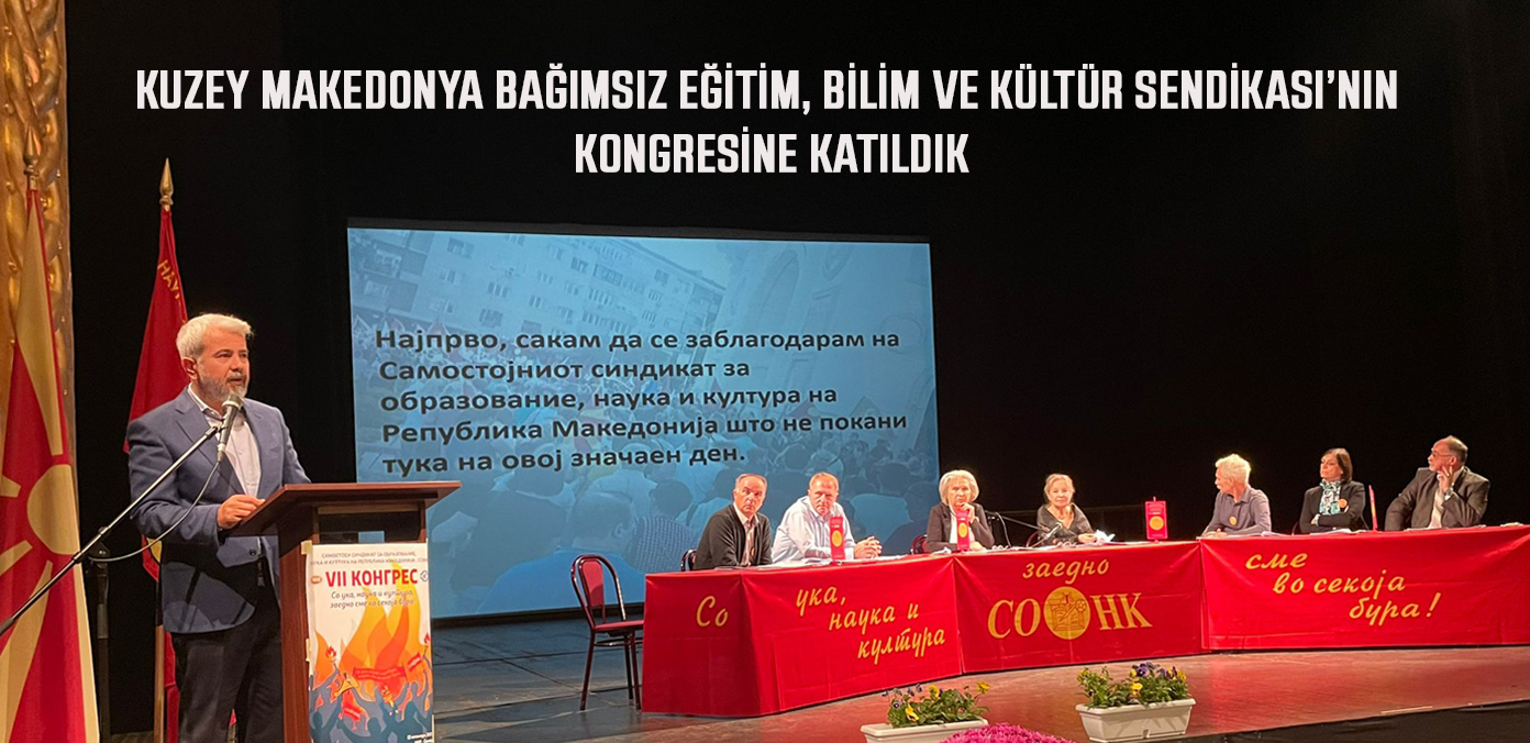 Eğitim-Bir-Sen Genel Başkan Yardımcısı Atilla Olçum, Makedonya’nın Başkenti Üsküp’te düzenlenen Makedonya Bağımsız Eğitim, Bilim ve Kültür Sendikası’nın (SONK) 7. Olağan Genel Kurulu’na katıldı.