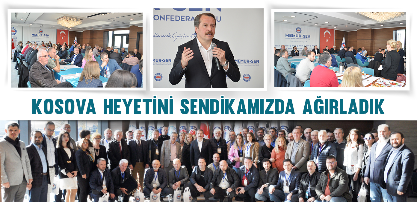 Kosovalı heyeti ağırlamaktan dolayı mutlu olduklarını kaydeden Yalçın, “Bugün aynı zamanda Cumhuriyetimizin 98. yılı. Bu vesileyle nice yıllar diliyor, Kosova ile dostluğumuzun ebediyete kadar devam etmesini temenni ediyorum. Kosova’yı ilk tanıyan, ilk serbest ticaret anlaşmasını yapan devlet olarak ülkemizin Kosova ile tarihi ve kültürel bağları mevcuttur. Bizler de, sendika olarak, Kosova’daki emek örgütleriyle, eğitim sendikalarıyla iş birliğimizi her geçen gün kuvvetlendirmeye çalışıyoruz. Memur-Sen Konfederasyonu ve Eğitim-Bir-Sen olarak, sizin yanınızdayız. Türkiye’ye geldiğinizde ilk gireceğiniz kapı burası olsun. Türkiye’nin en büyük örgütlü yapısı, bir milyonu aşkın üyesiyle Türkiye’deki en büyük konfederasyon, Memur-Sen. Sizleri ağırlamaktan, sizlerle bir arada olmaktan dolayı mutluyuz” dedi.