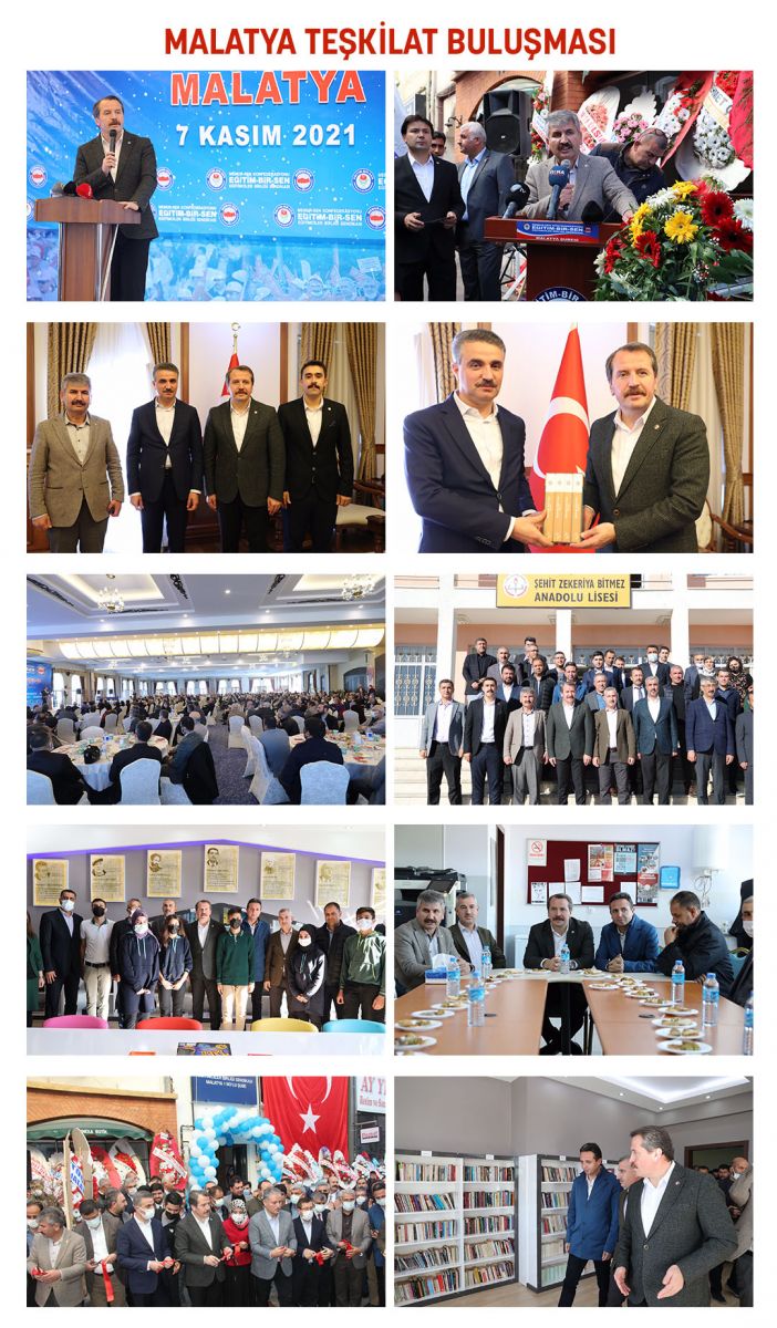 Ali Yalçın, Tokat, Sivas ve Malatya şubelerinin düzenlediği ‘Teşkilat Buluşması’na, Sivas ve Malatya şubelerinin hizmet binasının açılışına katıldı. Toplu sözleşme sürecine, eğitim gündemine ve sendikal çalışmalara ilişkin değerlendirmelerin yapıldığı toplantılarda konuşan Yalçın, sorunlara çözüm bulmanın, kazanım elde etmenin, haksızlıkları ortadan kaldırmanın yolunun mücadele etmekten, örgütlenmekten geçtiğine dikkat çekerek, “Söz konusu temel hak ve hürriyetlerimiz, ekonomik ve sosyal haklarımız, demokrasi standardımız ise önümüzde etkili olan bir yol var, o da ‘sendikacılıktır’ diyerek başlanılan günden bu yana 30 yıl geçti. Bu süreçte önemli mücadeleler verdik, pek çok badire atlattık, bariyerler aştık, onlarca kazanım elde ettik, yasakların kaldırılmasını, sorunların çözümünü sağladık. Kazanım mücadelemiz kararlılıkla sürüyor” ifadelerini kullandı.