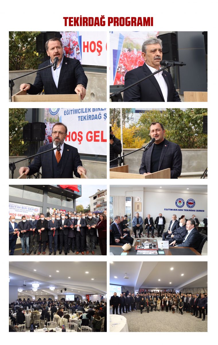 Eğitim-Bir-Sen ve Memur-Sen Genel Başkanı Ali Yalçın, Eskişehir, Tekirdağ, Edirne, Kırklareli, İzmir ve Kütahya’da üyelerle bir araya geldi. Ali Yalçın, ilk olarak, Eğitim-Bir-Sen Genel Başkan Yardımcısı Muammer Karaman ile birlikte Eskişehir 1 No’lu Şube’nin ‘Teşkilat Buluşması’na katıldı. Yalçın, 3600 ek gösterge, Öğretmenlik Meslek Kanunu, 20. Millî Eğitim Şûrası başta olmak üzere, çözüm bekleyen sorunlara ve toplu sözleşme kararlarına ilişkin değerlendirmelerin yapıldığı toplantının ardından Tekirdağ Şubesi’nin hizmet binasının açılışını gerçekleştirdi.