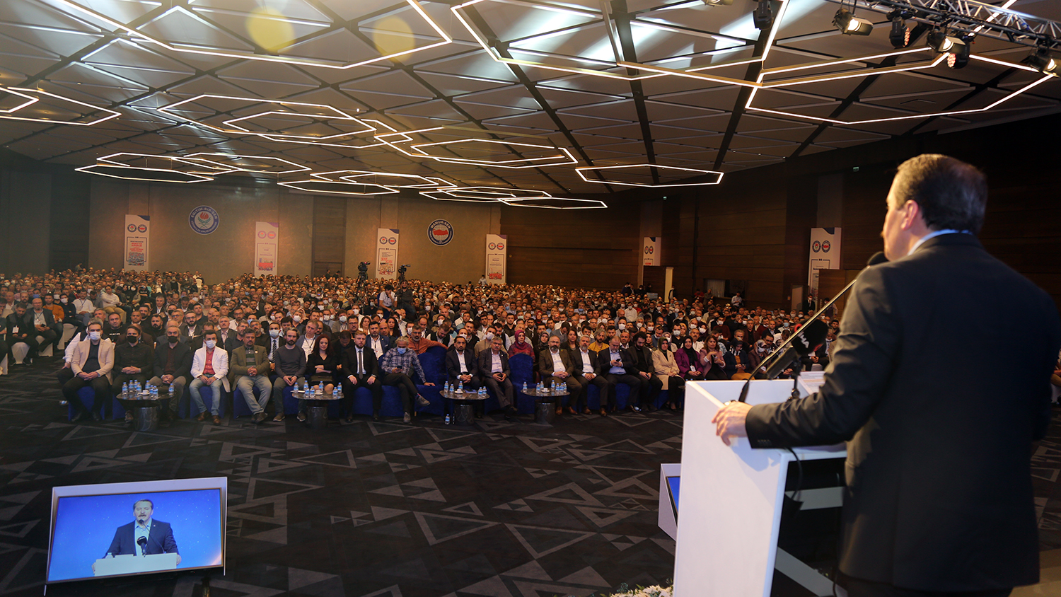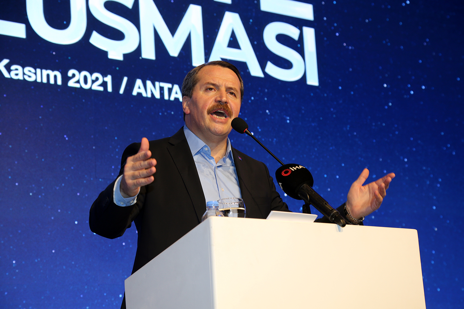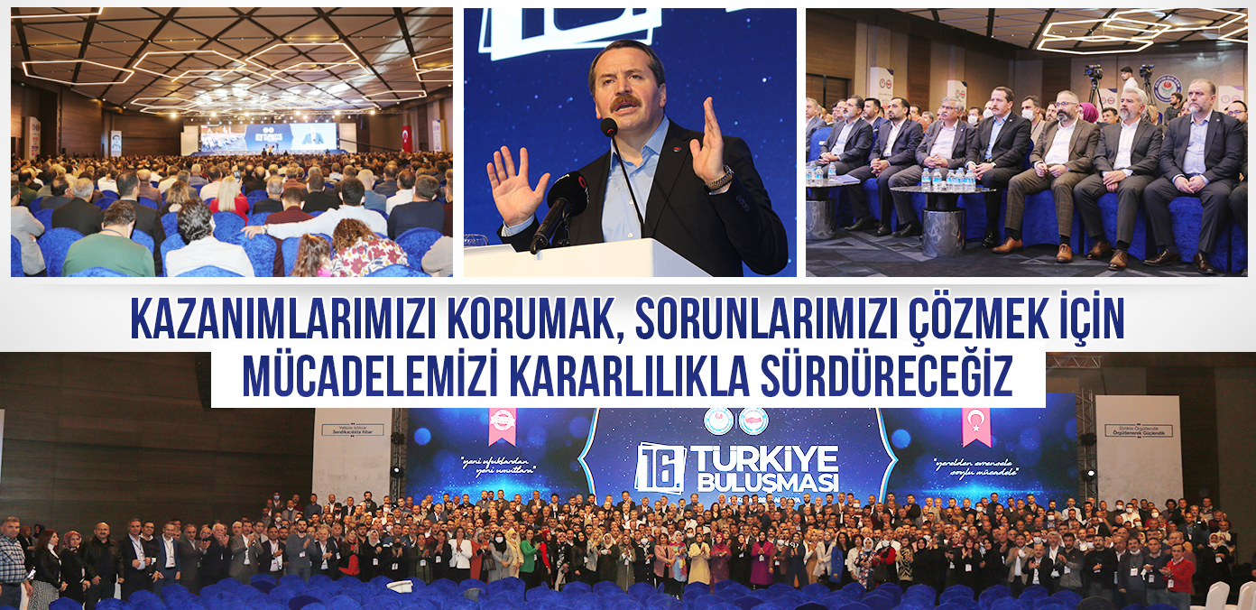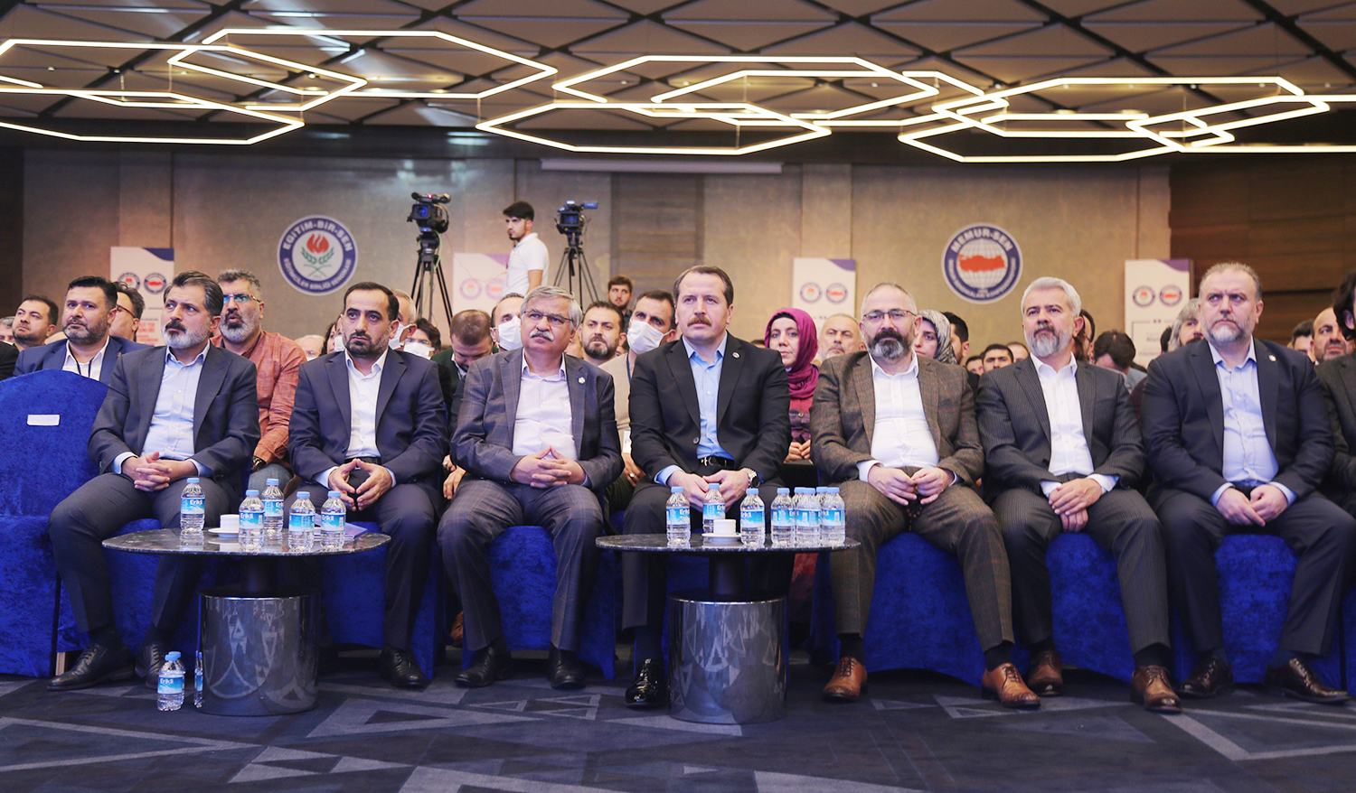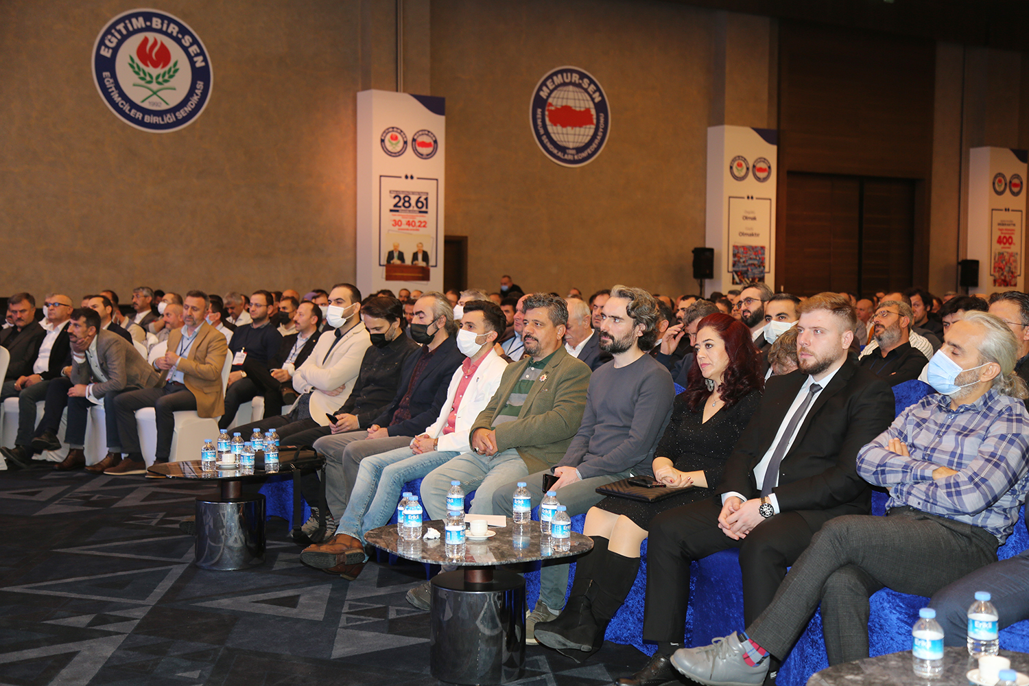 Küresel itirazın öncüsü, insanlık için direnişin iradesi, büyük ve güçlü Türkiye’nin öznesi olduklarını kaydeden Yalçın, “Biz vesayet düzenine direnen, o düzeni değiştiren iradeyiz. Biz ideolojik eğitim sistemine itiraz eden, o sistemi değiştiren teşkilatız. Biz bu toprakların birikimini dünyaya taşıyan emek hareketiyiz. Biz Türkiye’yiz, biz milletiz-ümmetiz, biz Eğitim-Bir-Sen’iz. Yerelden evrensele, yeni ufuklardan yeni umutlara olan mücadelemiz bu birikime yaslanıyor. Bu nedenle, medeniyet değerlerimizi korumak, bu değerleri tehdit eden her türlü girişimle hesaplaşmak bizim doğal misyonumuzdur. Neoliberal kültürün aileyi, toplumu tehdit eden bütün aparatlarının karşısındayız” diye konuştu.