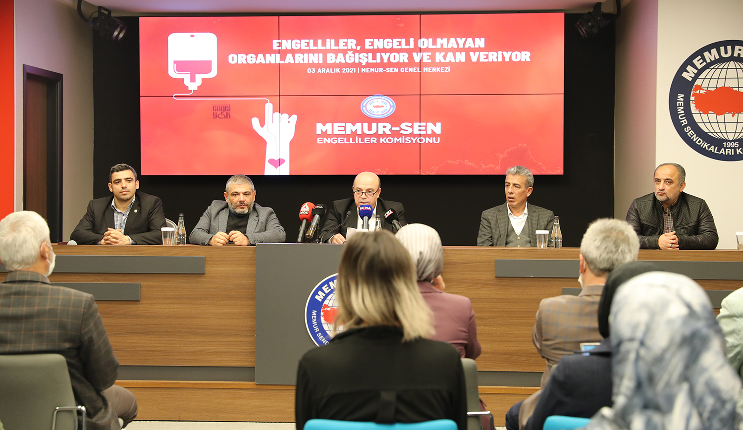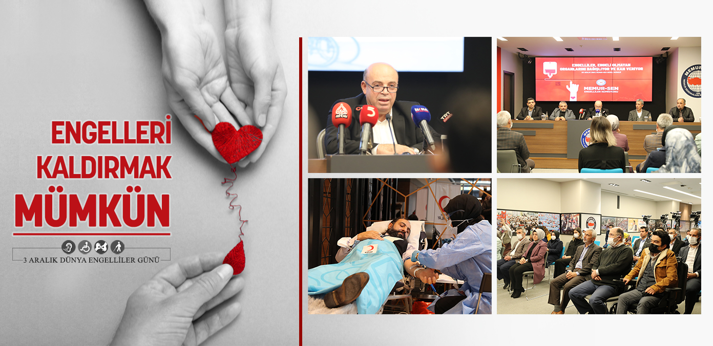Memur-Sen Engelliler Komisyonu, 3 Aralık Dünya Engelliler Günü kapsamında basın toplantısı ve kan bağışı etkinliği düzenledi. Hiçbir gücün millet olma bütünlüğümüzü engellemeye yetmeyeceğini belirten Karaaslan, dünya nüfusunun yüzde 15’ini oluşturan engelli bireylerin, 2011 verilerine göre Türkiye nüfusunun yüzde 7’sine tekabül ettiğine dikkat çekerek, “Ülkemizde toplam nüfusun iş gücüne katılım oranı yüzde 50,3 iken, engelli nüfusun iş gücüne katılım oranı yüzde 22 civarındadır. Kamuda yaklaşık 60 bin engelli personelimiz memur kadrosunda çalışmaktadır. Engellilerin sosyal, kültürel, ekonomik, çalışma başta olmak üzere, hayatın her alanında ayrımcılığa uğramadan var olabileceği; engellerle karşılaşmadan, daha erişilebilir ve daha saygın şartlarda yaşayacağı bir düzeni sağlamak hepimizin asli görevidir. Çünkü engelliliği ortadan kaldırmak mümkün olmazsa da engelleyici bakışı, engelleyici mevzuatı, fiziki ve psikolojik bariyerleri ortadan kaldırmak mümkündür. Hayattan soyutlamak yerine hayatın içine katan yaklaşımları bir ihsan olarak değil, insanı önceleyen bir irfan olarak değerlendirmek gerekmektedir” şeklinde konuştu.