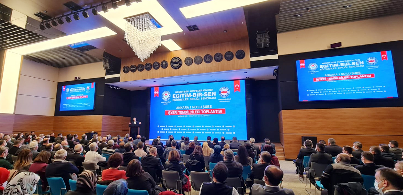 Eğitim-Bir-Sen ve Memur-Sen Genel Başkanı Ali Yalçın, Ankara 1 No’lu Şube’nin işyeri temsilcileri toplantısına katıldı. Sendikal çalışmalara, eğitim gündemine ve eğitim çalışanlarının beklentilerine ilişkin değerlendirmelerin yapıldığı toplantının açılışında konuşan Ali Yalçın, Öğretmenlik Meslek Kanunu’nun ivedilikle Meclis’e sunularak yasalaşması gerektiğini söyledi.