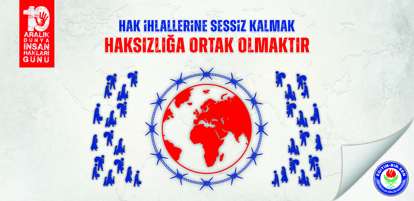 Eğitim-Bir-Sen olarak, insanın onurunu koruyan, umudunu canlı tutan, temel insan haklarını herkes için mümkün kılan bir dünya düzeninin hepimiz için en büyük ihtiyaç olduğuna inanıyoruz. 30 yıllık hak ve özgürlük mücadelemizde her zaman haksızlığa karşı durduk, kim olduğuna bakmadan mazlumun yanında olduk, olmaya da devam edeceğiz.