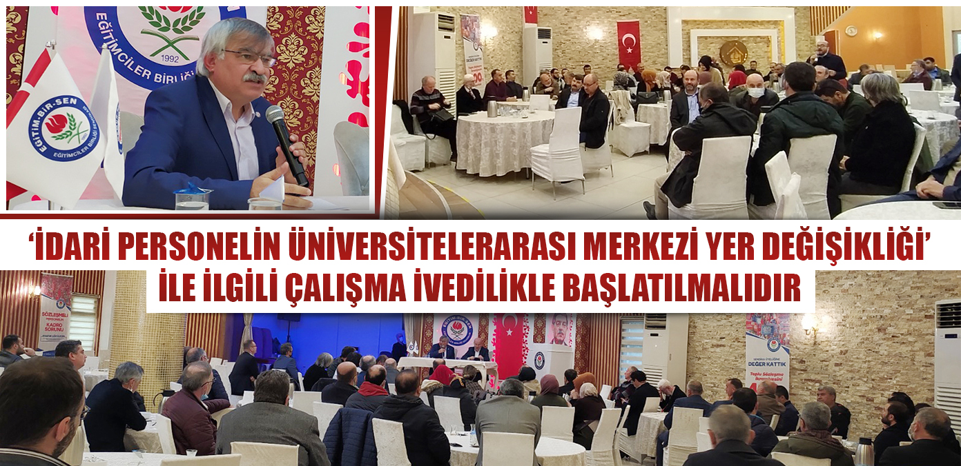 Eğitim-Bir-Sen Genel Sekreteri Latif Selvi, toplu sözleşmede karar altına aldırdıkları ‘idari personelin üniversitelerarası merkezi yer değişikliği’ konusundaki çalışmanın başlatılarak 2021-2022 öğretim yılının sonuna kadar tamamlanması gerektiğini söyledi.