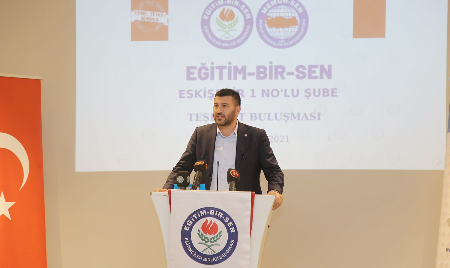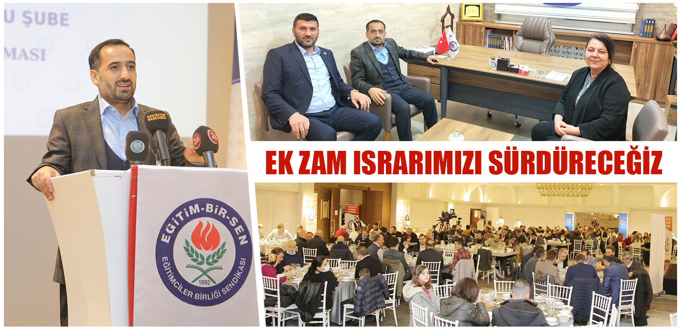 Eğitim-Bir-Sen Genel Başkan Yardımcısı Ramazan Çakırcı, Eskişehir 1 No’lu Şube’nin yardımcı hizmetli, memur, VHKİ, şef, şoför, sayman ve teknisyen üyelerin katılımıyla düzenlediği toplantıda, sendikal çalışmalara, toplu sözleşme sürecine ve ek zam konusuna ilişkin değerlendirmelerde bulundu. Ek zam konusunda ısrarcı olduklarını vurgulayan Çakırcı, “Israrımızı sürdüreceğiz. Kamu görevlilerinin ek zam beklentisinin gerçekleşmesi için elimizden geleni yapacağız” dedi.