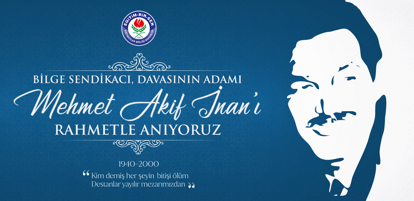 “Yaslasam gövdemi karlı dağlara/ Sonsuz bir uykuya kavuşsam bir gün”, “Bitirip şu kuru kara ekmeği/ Göç etsem diyorum yar ellerine” mısralarıyla aidiyetini ve vuslat arzusunu belirten Mehmet Akif İnan, bir aydın olarak eserler bırakmış, Kudüs Şairi namıyla bir bilinci aşılamış, hitabetiyle gönülleri fethetmiş, kalender meşrep şahsiyetiyle örnek bir insan portresi çizmiş, şiirleriyle duygularını ve ideallerini mezcetmiş; Eğitim-Bir-Sen’i kurarak hak ve emek alanında bir mücadele başlatmıştır. Bugün bu mücadeleyi kuşanan dava erleri olarak, Kurucu Genel Başkanımız Mehmet Akif İnan’ı bir defa daha rahmet ve şükranla anıyoruz.