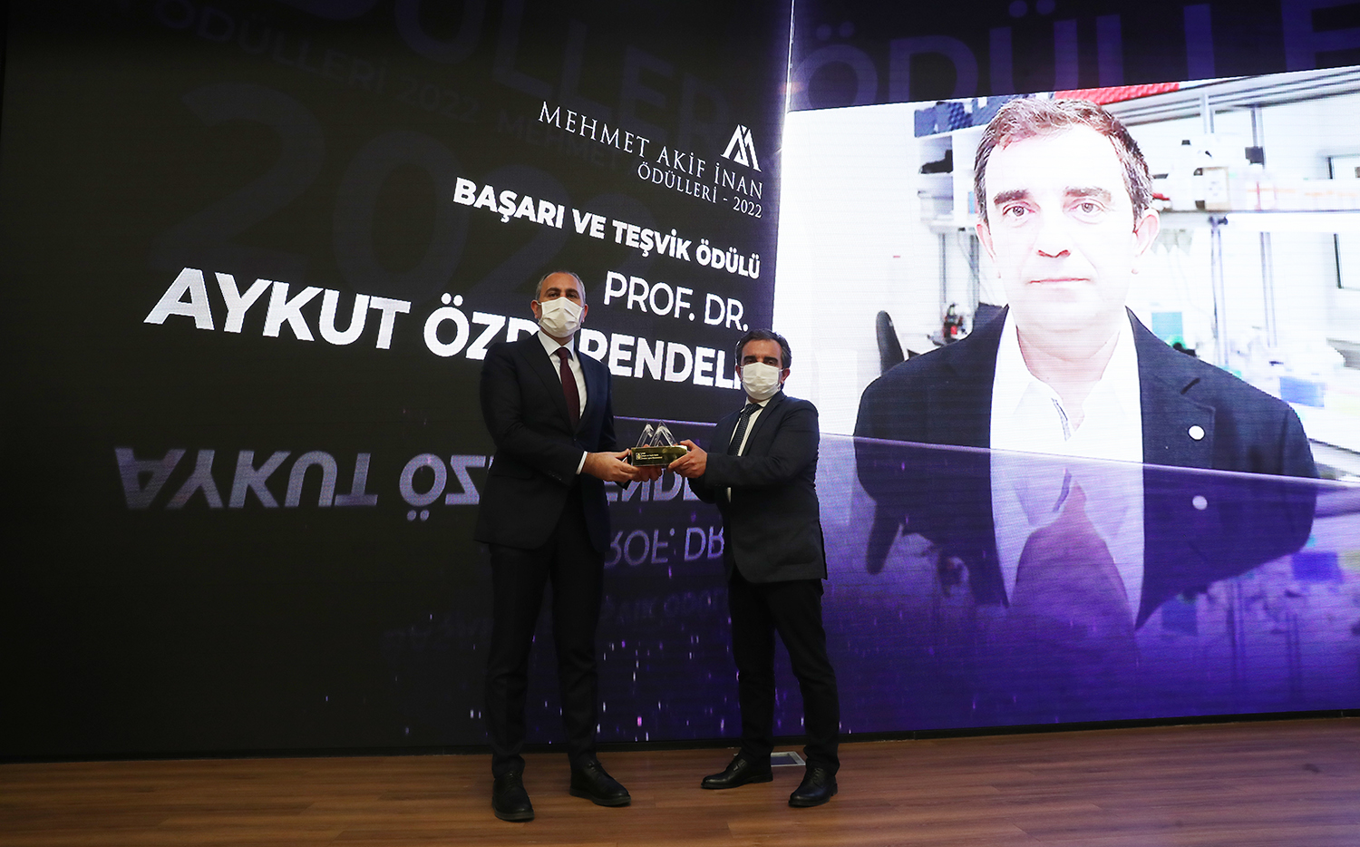 Mehmet Akif İnan Ödülleri kapsamında ‘Başarı ve Teşvik Ödülü’ Covid-19 salgınına karşı geliştirilen TURKOVAC aşısının mucidi Erciyes Üniversitesi Tıp Fakültesi Tıbbi Mikrobiyoloji Ana Bilim Dalı Öğretim Üyesi Prof. Dr. Aykut Özdarendeli’ye verildi.