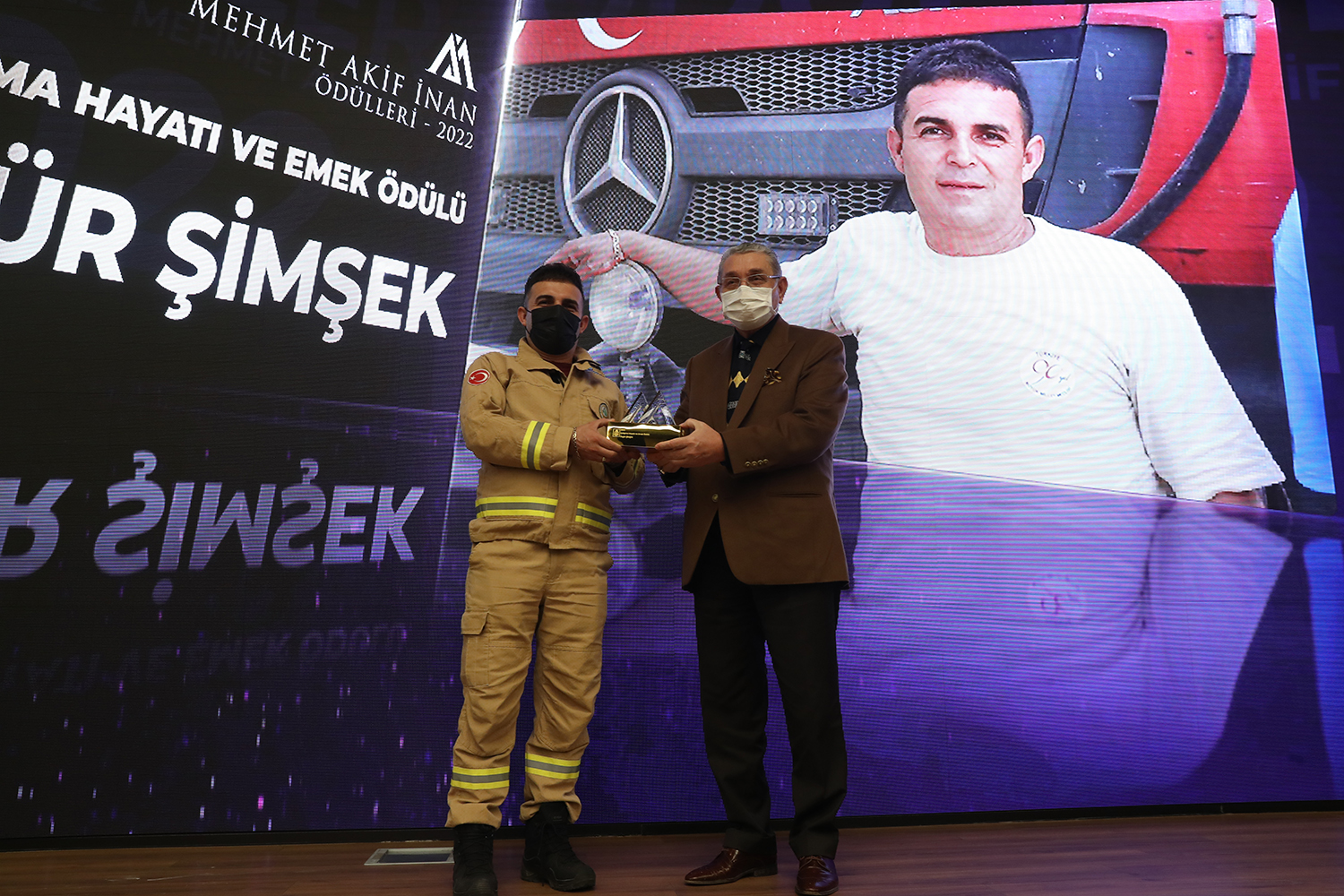 Ödül töreninde konuşan Eğitim-Bir-Sen ve Memur-Sen Genel Başkanı Ali Yalçın, Mehmet Akif İnan’ın şair, mütefekkir, öğretmen ve aynı zamanda bir eylem adamı olduğunu belirterek İnan’ı tarihe, medeniyete, çağa ve bütün insanlığa karşı sorumluluğunu vefayla mayaladığı fikirleriyle sirayet etmiş bir uygarlık savaşçısı olarak niteledi.
