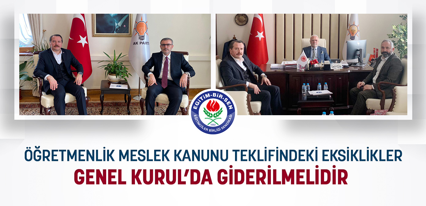 Eğitim-Bir-Sen ve Memur-Sen Genel Başkanı Ali Yalçın ve Eğitim-Bir-Sen Genel Başkan Yardımcısı Hasan Yalçın Yayla, TBMM Genel Kurulu’nda görüşülmesi beklenen Öğretmenlik Meslek Kanunu teklifi konusunda AK Parti Grup Başkan vekilleri Mahir Ünal ve Mustafa Elitaş ile görüştü.