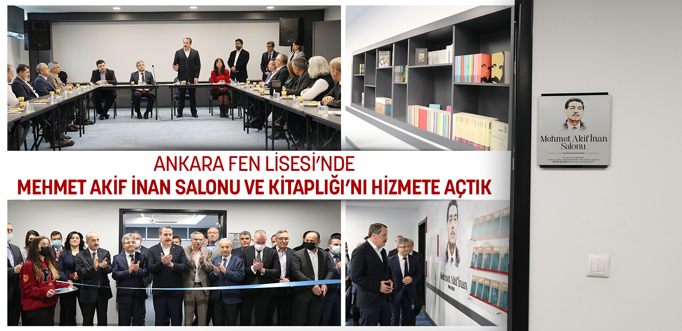 Eğitim-Bir-Sen Kurucu Genel Başkanı Mehmet Akif İnan’ın uzun yıllar görev yaptığı Ankara Fen Lisesi’nde Mehmet Akif İnan Salonu ve Kitaplığı, Eğitim-Bir-Sen ve Memur-Sen Genel Başkanı Ali Yalçın, Eğitim-Bir-Sen Genel Sekreteri Latif Selvi, Genel Başkan Yardımcısı Muammer Karaman, Şükrü Kolukısa, Hasan Yalçın Yayla, Mehmet Akif İnan Vakfı Yönetim Kurulu Başkanı Hıdır Yıldırım, Eğitim-Bir-Sen Ankara 1 No’lu Şube Başkanı Yüksel Haşlak ve Yönetim Kurulu üyeleri, Ankara Fen Lisesi Müdürü Dr. Sinan Dağ, müdür yardımcıları ve öğretmenlerin katılımıyla hizmete açıldı.