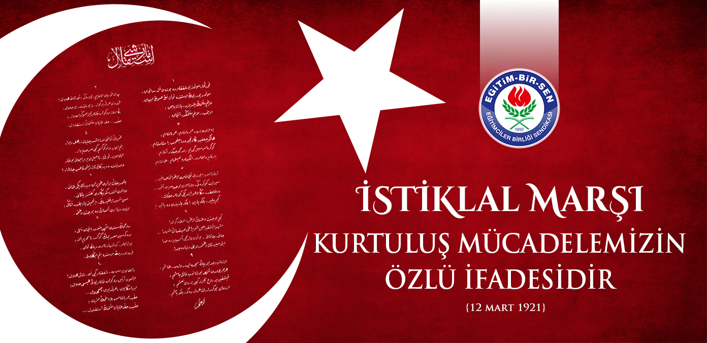 Eğitim-Bir-Sen olarak, millî mutabakat metnimiz olan İstiklal Marşı’nın TBMM’de ‘Millî Marş’ olarak kabul edilişinin 101. yılında, istiklal şairimiz Mehmet Akif Ersoy’u ve şehitlerimizi rahmetle yâd ediyoruz.