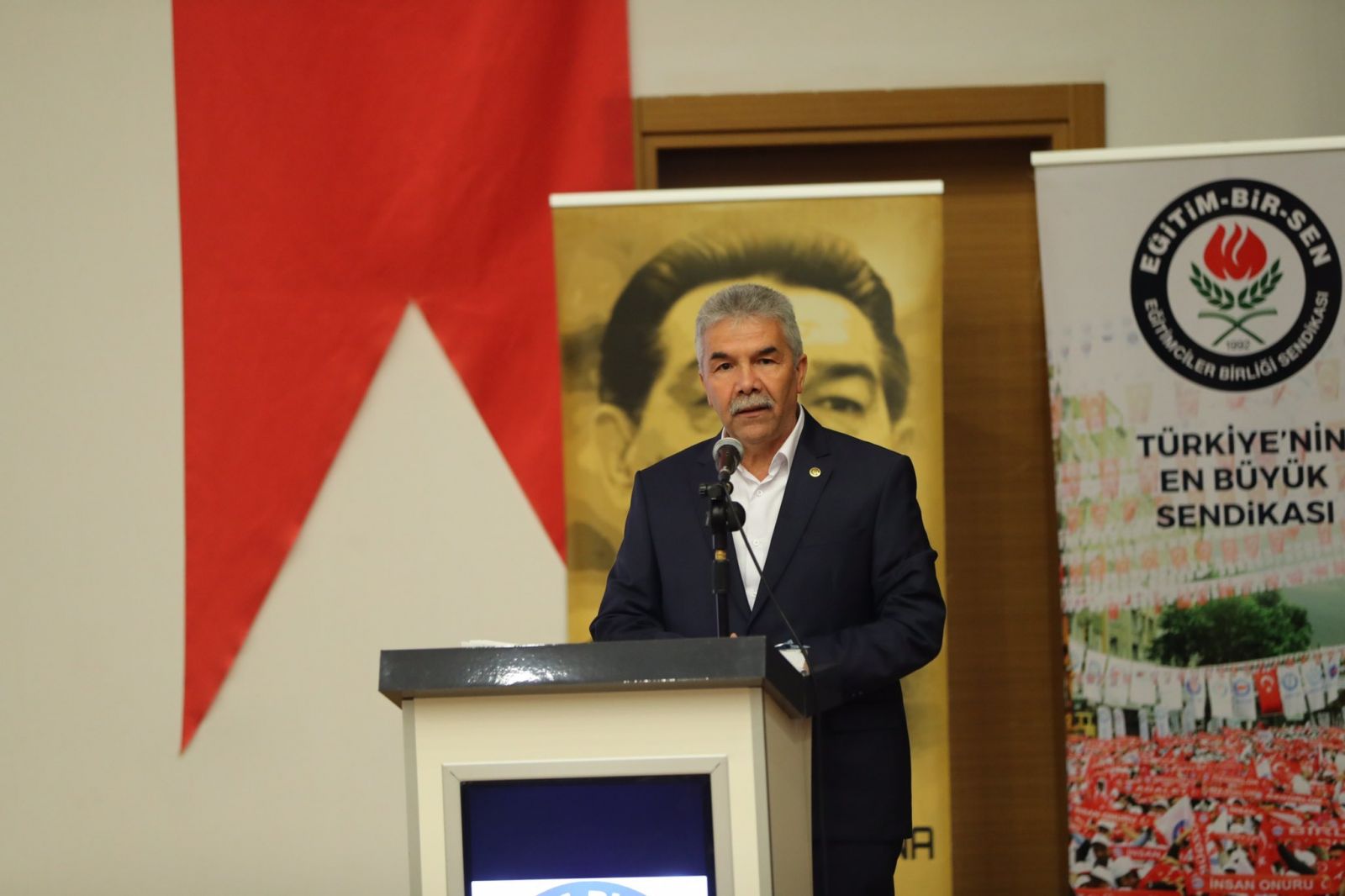 Eğitim-Bir-Sen ve Memur-Sen Genel Başkanı Ali Yalçın, bugüne kadar yüzlerce sorunu örgütlü güçleriyle birer birer çözüme kavuşturduklarını ifade ederek, “Emek Mücadelemizle 802 Kazanım kitabımızla tarihe kayıt düştük. Şimdi yeni kazanımlar peşindeyiz. Şube müdürünün, şefin, memurun, yardımcı hizmetlinin, üniversite idari personelinin, akademisyenin, öğretmenin; eğitim çalışanlarının, kamu görevlilerinin derdi derdimiz, sorunu bizim sorunumuz. Sorunlardan beslenmeyen, çözümlerle güçlenen sendikal mücadelemiz kararlılıkla devam ediyor” dedi.