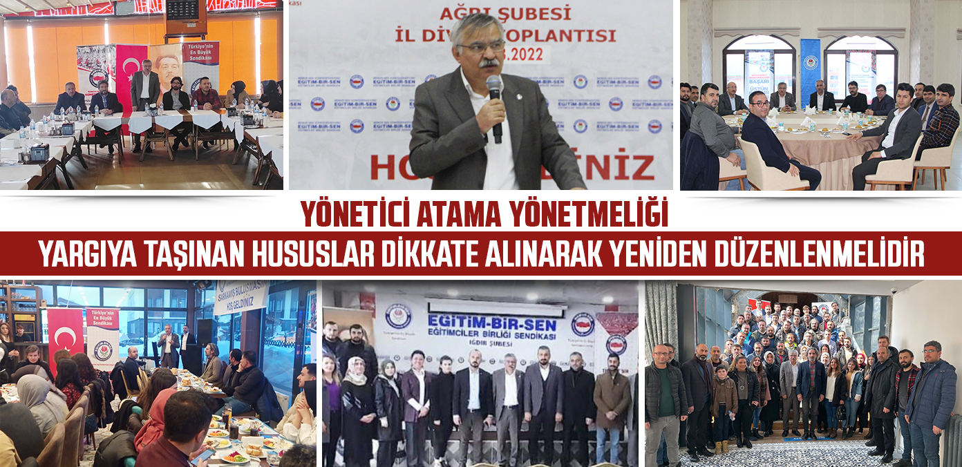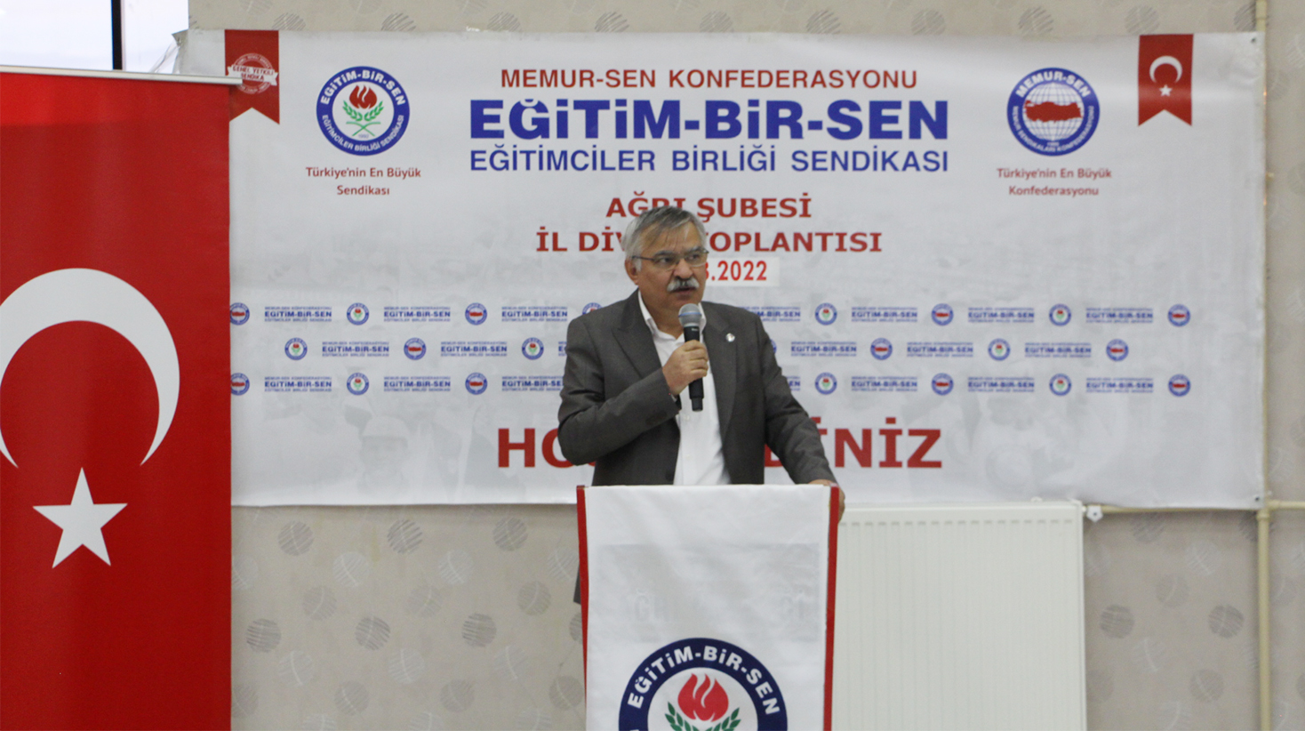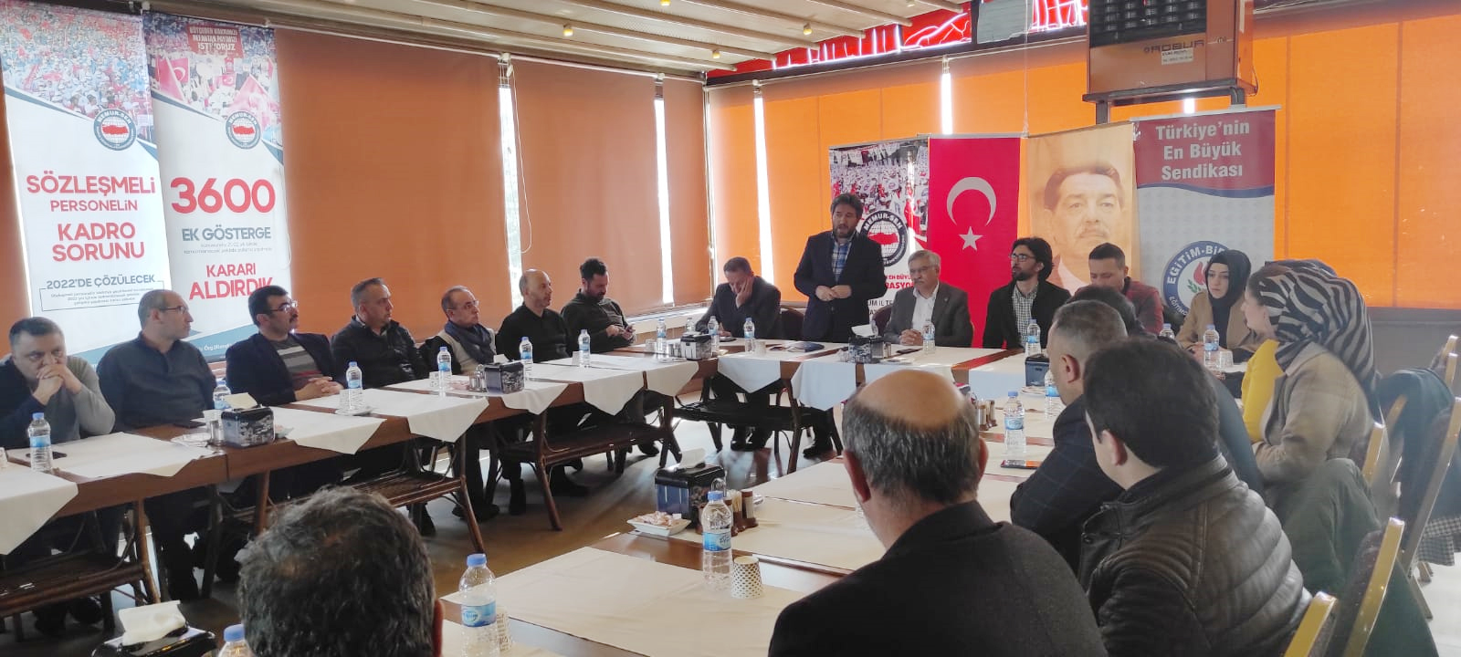 Eğitim-Bir-Sen Genel Sekreteri Latif Selvi, Ağrı, Kars, Iğdır ve Erzurum 2 No’lu Şube tarafından düzenlenen toplantılara katıldı. Eğitim gündemine ve sendikal çalışmalara ilişkin değerlendirmelerin yapıldığı, alanda karşılaşılan sorunların ve çözüm önerilerinin görüşüldüğü toplantılarda konuşan Latif Selvi, örgütlülüğün getirdiği güçle bugüne kadar birçok önemli kazanımın altında Eğitim-Bir-Sen’in imzasının olduğunu belirterek, “Teşkilat bilinciyle yetişmiş, emek ve alın teri mücadelesiyle bugünlere gelmiş bir teşkilat olarak, Türkiye’de kamu görevlileri için elde edilmiş birçok kazanımın altında imzamız var. Son toplu sözleşmede de görüldü ki Türkiye’de kamu sendikacılığını ve örgütlülüğü belli bir standarda taşıyan yine biz olduk. ‘Masanın konusu değil’ denilen konuları masada karara bağlayan, kamu personelinin kronikleşmiş sorunlarına çözüm getiren ve var olan sorunların çözümü için hiç hız kesmeden mücadeleye devam eden bir sendikayız. Çözüm odaklı çalışmalarımızı ve kararlı mücadelemizi bundan sonra da sürdüreceğiz” dedi.