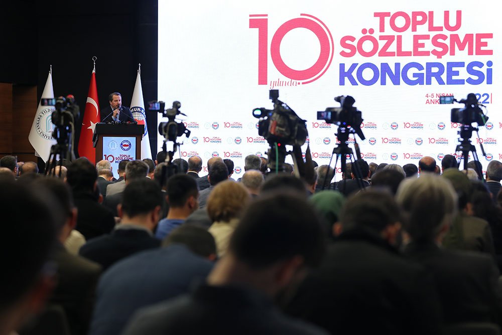 Ankara Yıldırım Beyazıt Üniversitesi Rektörü Prof. Dr. İbrahim Aydınlı ise, sendikaların yalnızca talep eden değil, aynı zamanda bu tür bilimsel çalışmalarla teklif sunan kuruluşlar olduğunun bir göstergesi olması bakımından kongreyi önemsediğini ifade ederek, “Son resmî veri olan Çalışma ve Sosyal Güvenlik Bakanlığı’nın Temmuz 2021 istatistiklerine göre memurlarda örgütlenme oranı yüzde 64,66’dır. Bir başka anlatımla memurların üçte ikisi sendikalıdır. İşçilerde örgütlenme oranı ise 14,32’dir. Sendikal yapıların örgütlenme oranları gibi yasal düzenlemelerinin de farklı olduğunu biliyoruz. Bu nedenle, işçi ve memur sendikalarının yasal düzenlemeler bakımından farklı normlara tabi olmaları birtakım tartışmaları beraberinde getirmektedir. Dünyada sendikalar üye kaybederken ülkemizde kamu sendikacılığında önemli bir örgütlenme oranına ulaşıldı. Ancak zannımca nicelik olarak büyüyen sendikal hareketi nitelik olarak geliştirmedikçe sendikal krizlerin ortaya çıkması muhtemeldir. Bu nedenle, sendikalar nicelik artışını niteliğe dönüştürmenin yollarına kafa yormalıdır” ifadelerini kullandı.