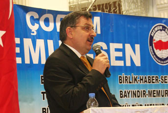Gündogdu, Memur-Sen Il Divan Toplantisi’na katildiktan sonra, ‘Kusatilmis Demokrasi ve Sivil Toplum’ konulu konferansa konusmaci olarak katildi.