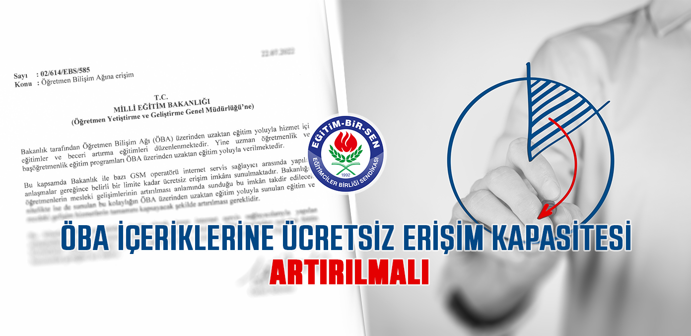 Eğitim-Bir-Sen olarak Millî Eğitim Bakanlığı’na başvurarak GSM operatörleri başta olmak üzere internet servis sağlayıcılarıyla yapılan anlaşmaların sayısı ve ücretsiz erişimin kapasitesinin artırılarak ÖBA üzerinden sunulan bütün hizmetlerin ücretsiz erişim yoluyla sağlanmasını talep ettik.