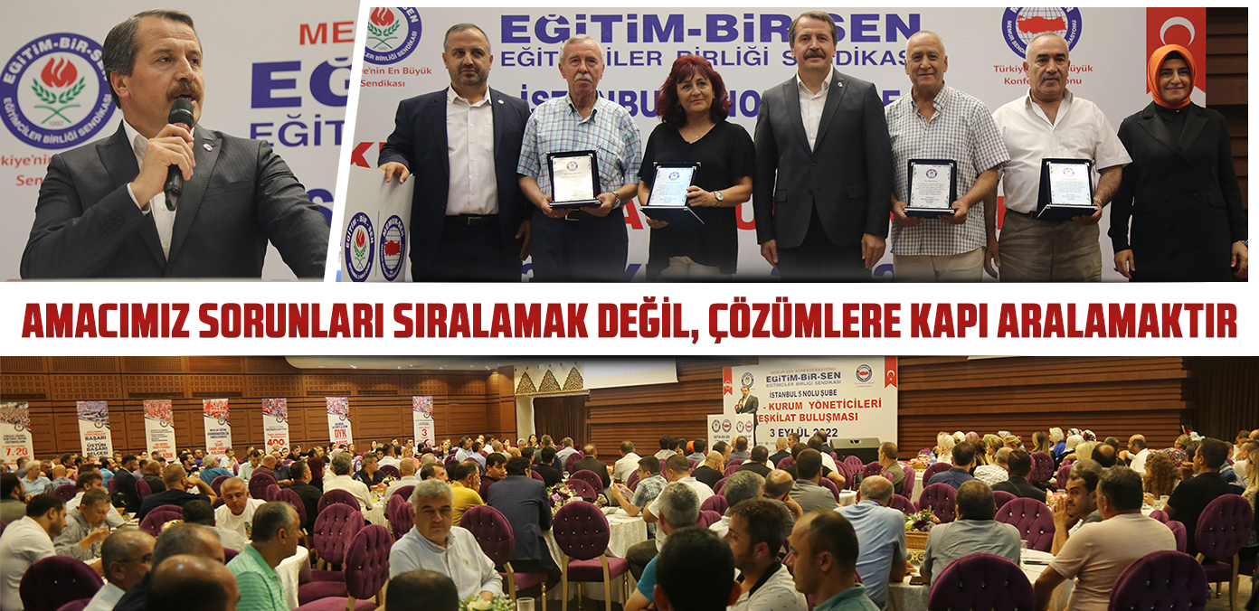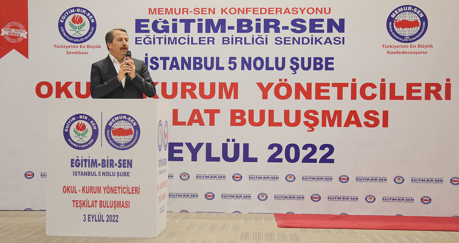 Eğitim-Bir-Sen ve Memur-Sen Genel Başkanı Ali Yalçın, sorunları sıralamakla yetinmediklerini ifade ederek, “Her daim çözümlere kapı aralamaya çabaladık. Her zaman ilk tercihimizi sorunlu değil, sorumlu sendikacılıktan yana kullandık. Bu anlayışla üyelerimizin güvenini güce, gücümüzü ise ekonomik, sosyal hakları iyileştirmeye; özlük haklarını, özgürlükleri geliştirmeye odakladık” dedi.