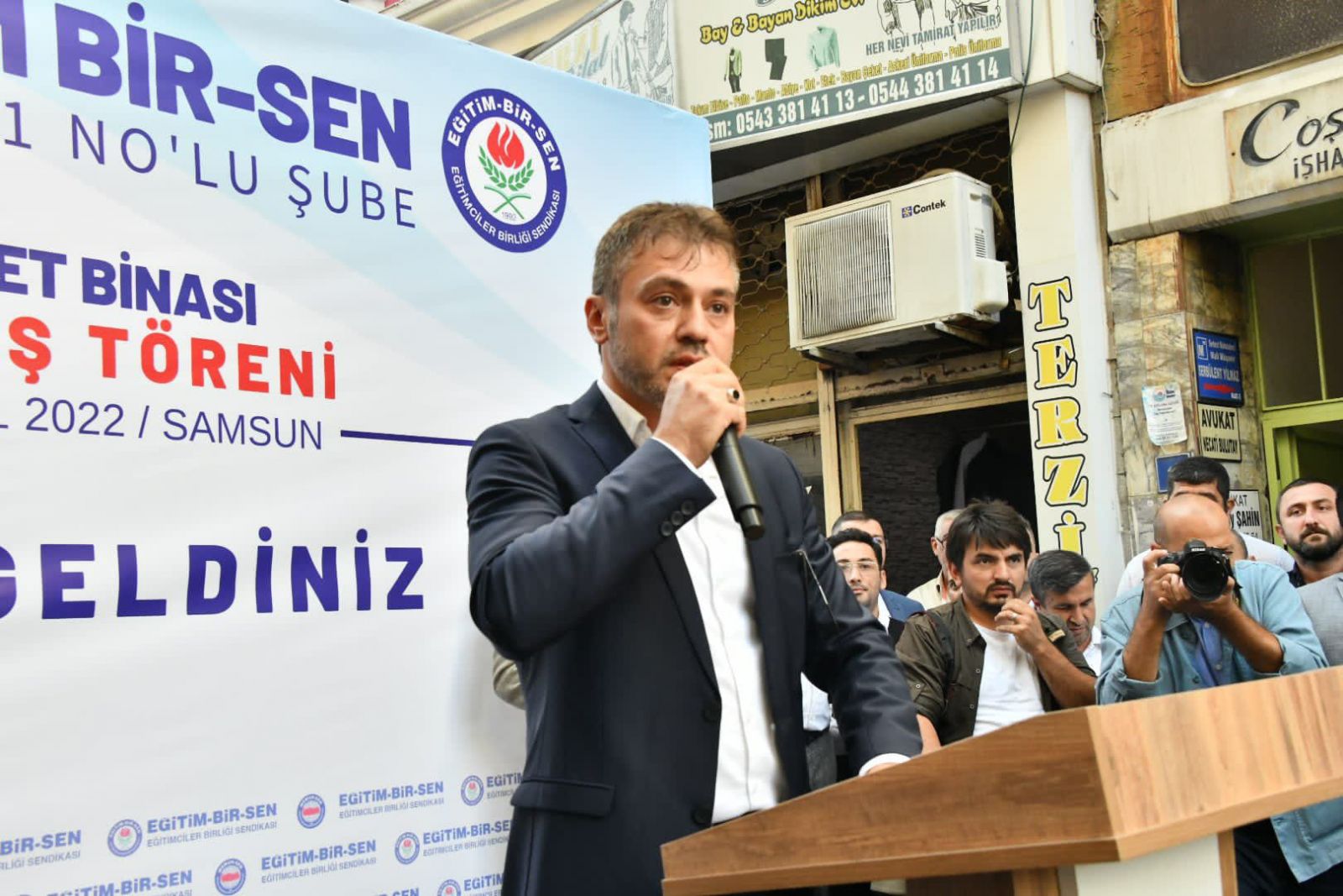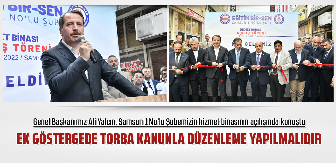 Ali Yalçın, Eğitim-Bir-Sen Samsun 1 No’lu Şube’nin yeni binasını hizmete açtı. Vali Doç. Dr. Zülkif Dağlı, Belediye Başkanı Mustafa Demir, Samsun Üniversitesi Rektörü Prof. Dr. Mahmut Aydın, Eğitim Bir-Sen Samsun 1 No’lu Şube Başkanı Hamdi Yıldız, şube yöneticileri, üyeler, kurum ve kuruluşların yöneticilerinin katılımıyla düzenlenen törende konuşan Yalçın, 3600 ek göstergeyle ilgili çalışmalarının devam ettiğini kaydetti.