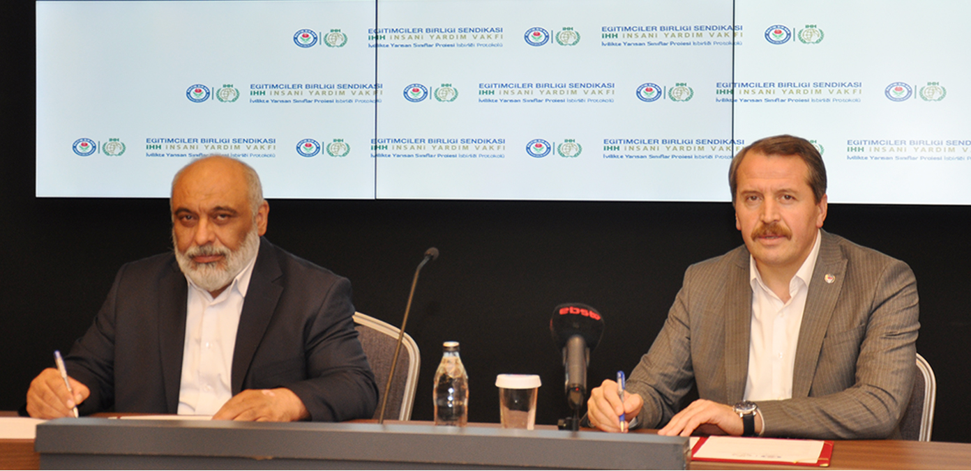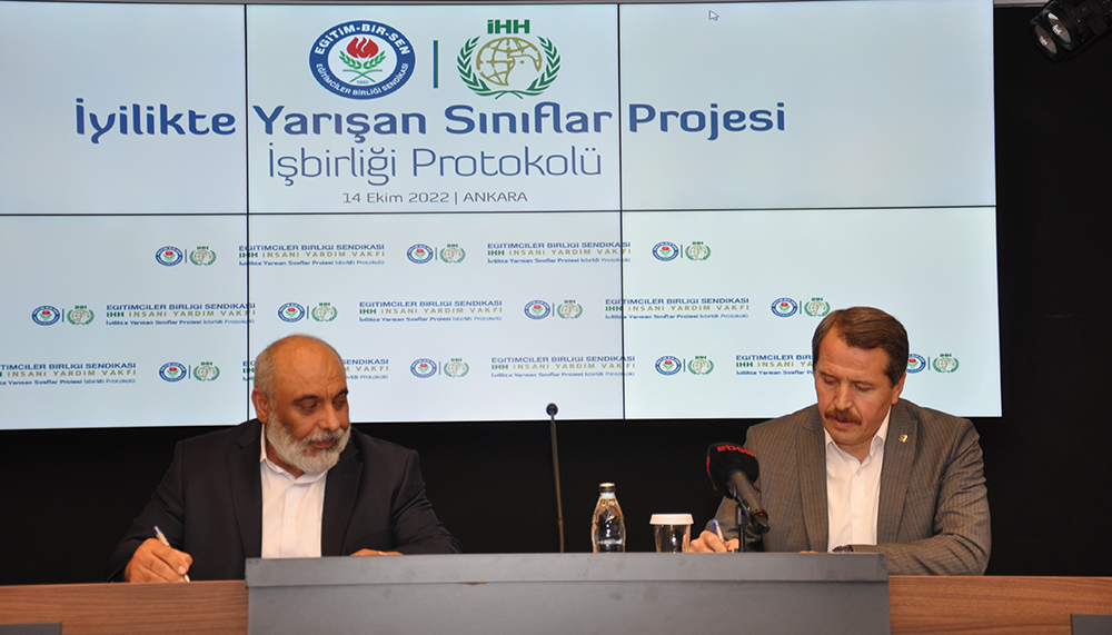 Eğitim-Bir-Sen ve İHH arasında 2013 yılından bu yana istikrarlı bir şekilde yürütülen “İyilikte Yarışan Sınıflar” projesi iş birliği protokolü, Genel Başkan Ali Yalçın ve İHH Genel Başkanı Bülent Yıldırım tarafından imzalandı.