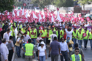 Sendikamiz Genel Sekreteri Halil Etyemez, Genel Egitim Sosyal Isler Sekreterimiz Esat Tektas, Kocaeli Sube Baskanimiz Halil Ibrahim Kelesoglu, Kayseri Sube Baskanimiz Aydin Kalkan, Bursa Sube Baskanimiz Numan Seker, Adiyaman Sube Sekreterimiz Neset Taner’in de destek verdigi Baskent’teki mitinge, aralarinda Mazlum-Der ve Küresel Eylem Grubu’nun bulundugu 25 sivil toplum örgütü katildi.