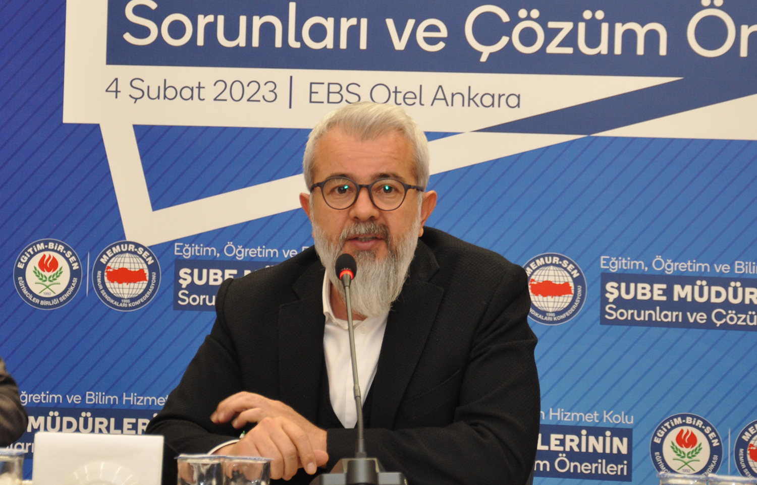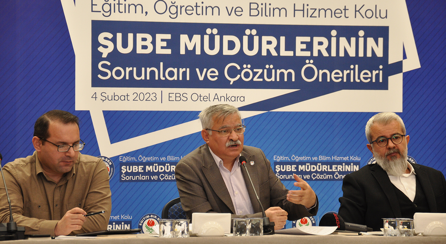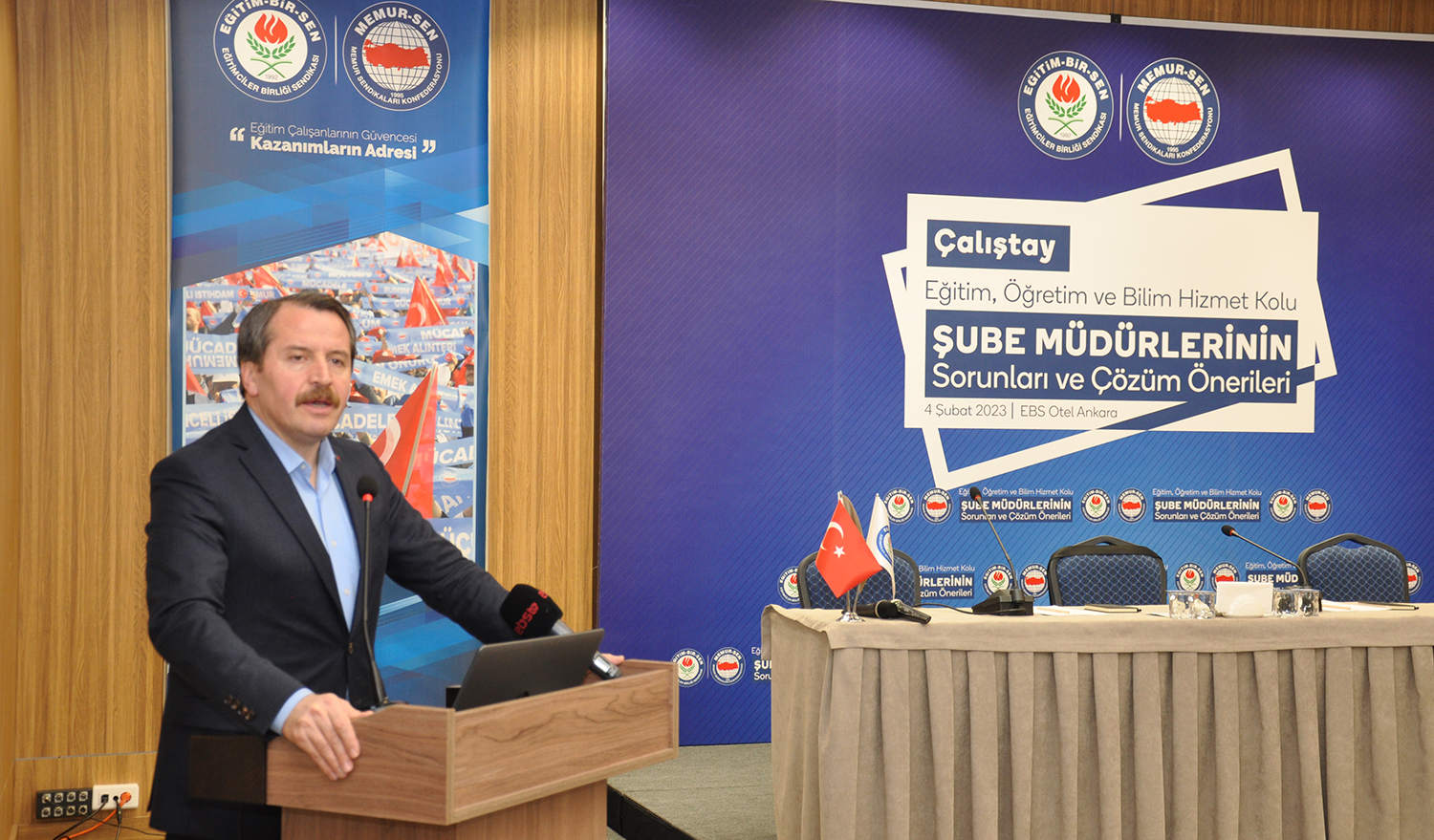Eğitim-Bir-Sen ve Memur-Sen Genel Başkanı Ali Yalçın, eğitim çalışanlarını bir bütün olarak gördüklerini ifade ederek, “Kamu görevlilerine ilişkin sorunları toplu sözleşme masasına taşırken, çözüm önerirken sağlıklı çözüm önerme konusunda spesifik çalışmalar yapıyoruz. Şube müdürlerinin sorunları ve çözüm önerileri çalıştayı da bu minvalde bir çalışmadır. Niyetimiz, amacımız, eğitim çalışanlarını öğretmen, şube müdürü, hizmetli, memur, şoför, akademisyen, idari personel gibi ayrıştırmak değildir. Sorunlarınız bizim için kıymetlidir. Toplu Sözleşme Masası’na, Kurum İdari Kurulu’na, Kamu Personeli Danışma Kurulu’na, daha rafine edilmiş, sadeleştirilmiş başlıkları ve çözüm önerilerini taşırız” dedi.