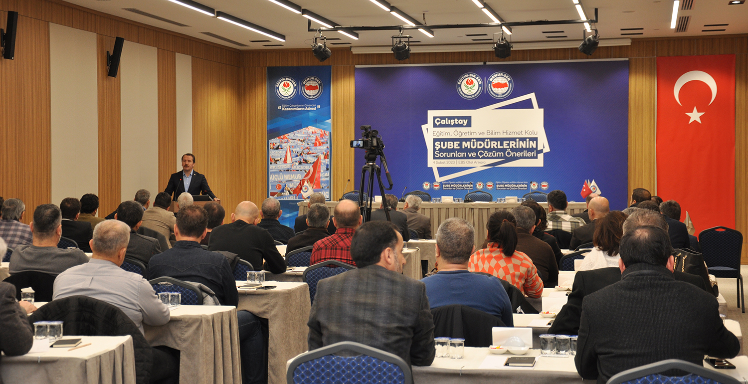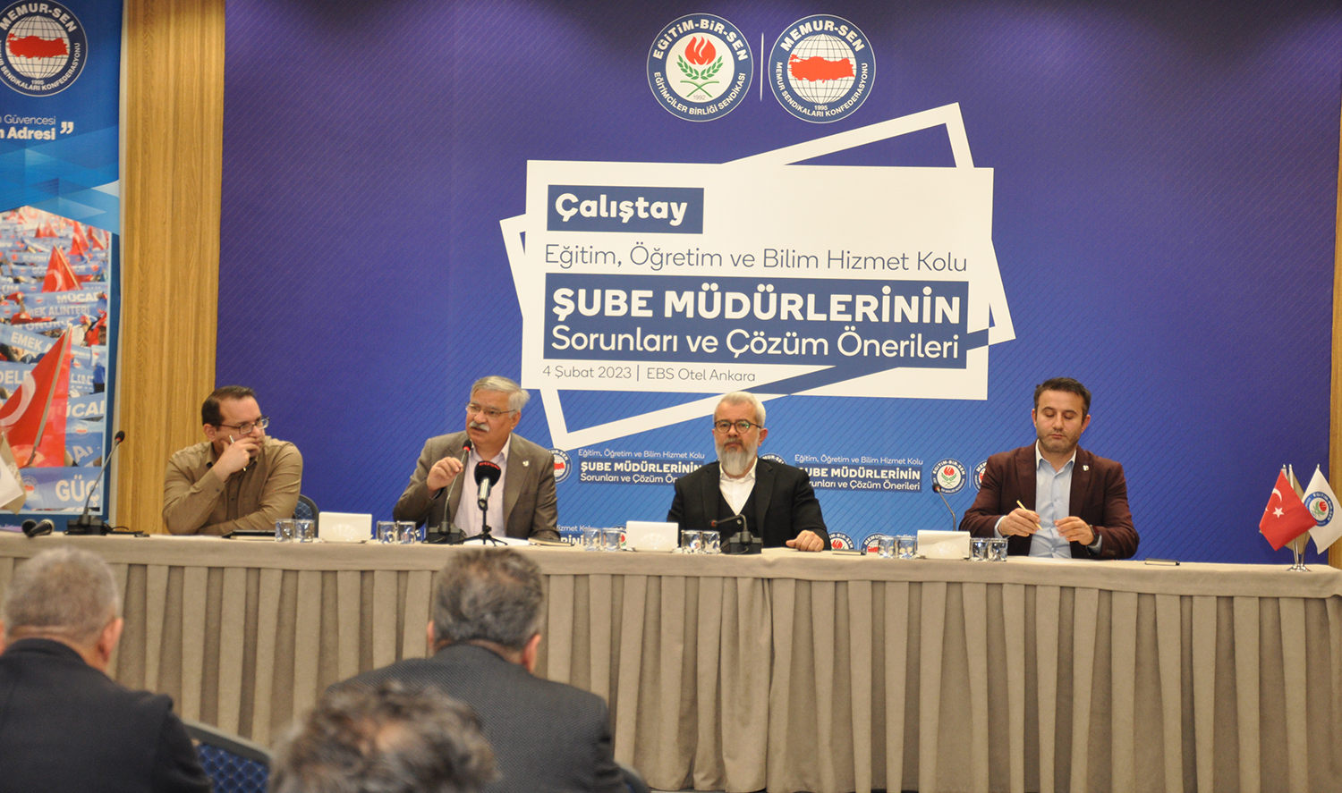 Eğitim, Öğretim ve Bilim Hizmet Kolu ‘Şube Müdürlerinin Sorunları ve Çözüm Önerileri’ Çalıştayı EBS Otel’de yapıldı. Eğitim-Bir-Sen Genel Sekreteri Latif Selvi, Genel Başkan Yardımcısı Ramazan Çakırcı, Muammer Karaman, Atilla Olçum, Hukuk Müşaviri Av. Harun Kale, Av. Ömer Raylaz, millî eğitim ve üniversite şube müdürlerinin katıldığı çalıştayın açılışında konuşan Genel Başkan Ali Yalçın, Eğitim-Bir-Sen olarak, iki yılda bir eğitim çalışanlarının sorunları ve çözüm önerileri şûrası gerçekleştirdiklerini belirterek, “Sorunların doğru ve yerinde teşhisinin, makul ve mümkün çözüm önerileri geliştirilmesinin anahtarı olduğunu düşünüyoruz. Şube müdürlerinin eğitim ve yükseköğretim yönetiminde üstlendikleri kilit görevlerin, kurumsal politikaların hayata geçirilmesindeki rollerinin, üstlendikleri yükün farkındayız. Ancak bu sorumluluk ve yükümlülüklerine nazaran hak ettikleri özlük haklarına kavuşamadıklarını da görüyoruz. Buna ilaveten, şube müdürlüğü kadrolarına atanmadan evvelki kadrolarından doğan kazanılmış haklarının yok sayılması da rahatsızlığa neden olmakta, ayrı bir sorun olarak varlığını sürdürmekte, huzursuzluğu bir kat daha artırmaktadır. Şube müdürlerinin statüleri, görevleri, sorumlulukları ve yüklendikleri işlerle orantılı özlük haklarının tesisi konusunda atılması zaruri görünen adımlara zemin hazırlamak üzere bu çalıştayın bir milat olmasını diliyorum” şeklinde konuştu.