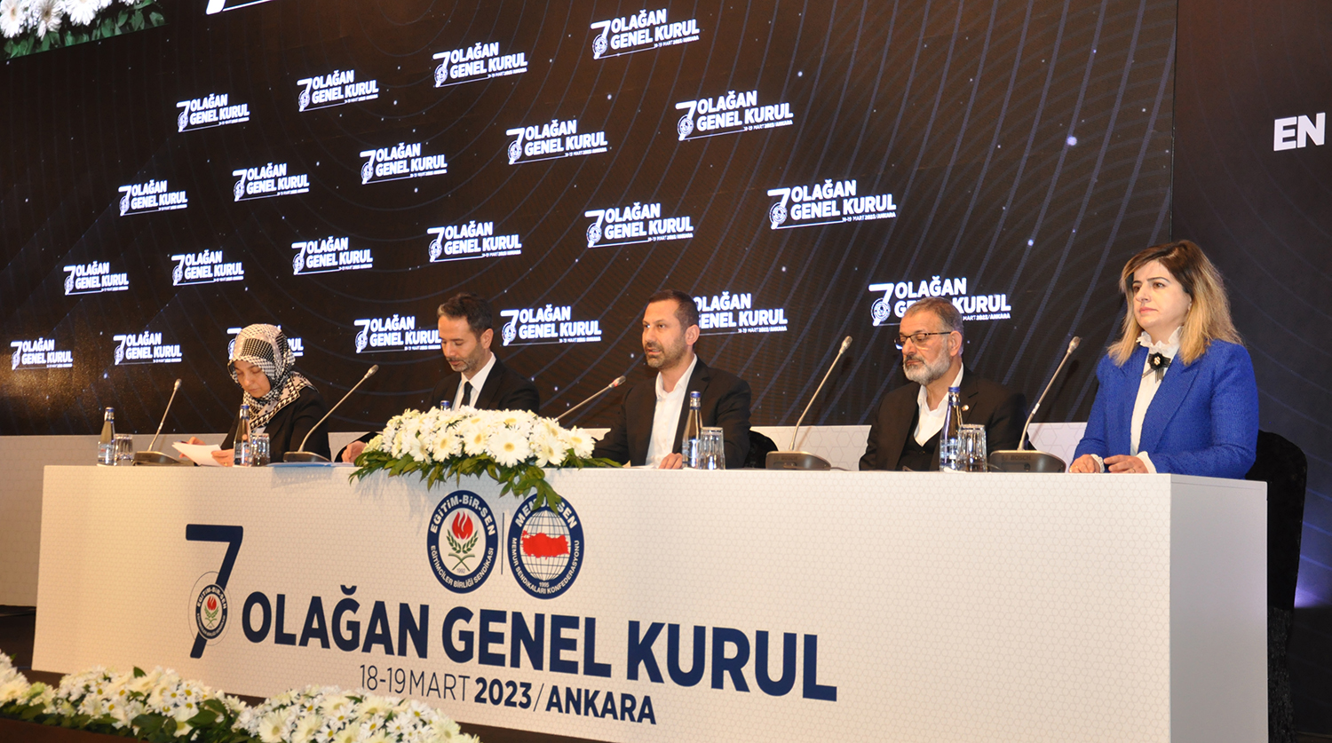 Eğitim-Bir-Sen 7. Olağan Genel Kurulu, Memur-Sen Yönetim Kurulu üyeleri, Memur-Sen’e bağlı sendikaların genel başkanları, Kadınlar Komisyonu, Genç Memur-Sen, Engelli Memur-Sen yönetimleri ve Eğitim-Bir-Sen delegelerinin katılımıyla Kızılcahamam’da başladı.