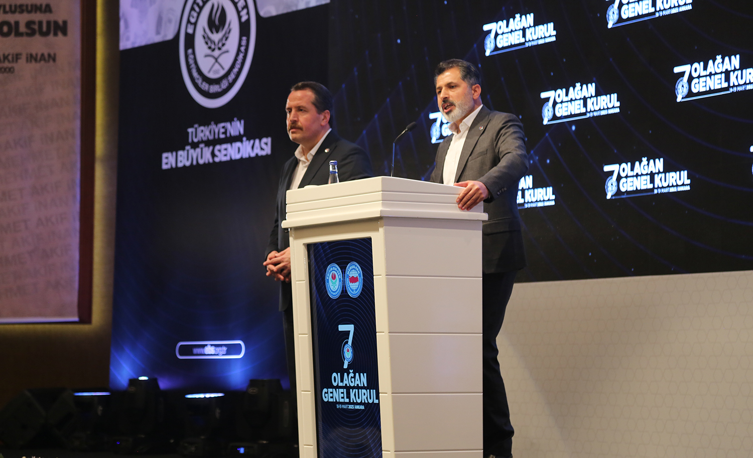Genel Başkan Adayı Şükrü Kolukısa ise, olanda hayır olduğunu dile getirerek, “Rabbim neyi tecelli ettirmişse o bizim başımızın tacıdır. Siz bizim kardeşlerimiz olarak tercihinizi hangi yönde yapmış olursanız olun hukukumuzda, arkadaşlığımızda, kardeşliğimizde zerre kadar bir değişme asla olmayacaktır. Rabbim bizim için hayırlısı neyse onu takdir etmiştir. Biz arkadaşlığımızı, yolculuğumuzu, kardeşliğimizi aynı minval üzere devam ettireceğiz. Ben sonucun sendikamız için, eğitim camiası için, ülkemiz için hayırlara vesile olmasını temenni ediyor, genel başkanımı ve seçilen ekibini tebrik ediyor, kendilerine başarılar diliyorum” şeklinde konuştu.