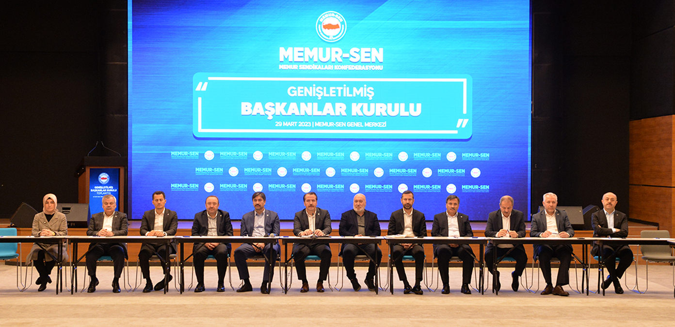 Memur-Sen Genişletilmiş Başkanlar Kurulu toplantısı, Memur-Sen Genel Merkezi’nde gerçekleştirildi. Toplantıda Memur-Sen ve bağlı sendikaların deprem bölgesine yönelik çalışmaları ve genel kurul süreçleri ele alındı.