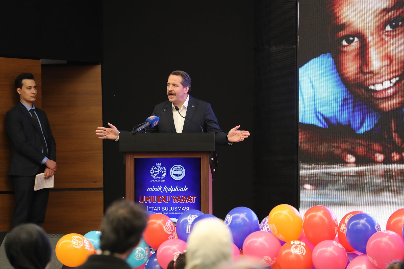 Memur-Sen ile İHH’nın geleneksel olarak düzenlediği Yetim Buluşması İftarı “Minik kalplerde umudu yaşat” temasıyla Memur-Sen Genel Merkezi’nde gerçekleştirildi. Yüzlerce çocuğun buluştuğu ve doyasıya eğlendiği programa Eğitim-Bir-Sen ve Memur-Sen Genel Başkanı Ali Yalçın, İHH Ankara Şube Başkanı Hacı Bayram Şahin, yetim çocukların koruyucu aileleri ve gönüllüler katıldı.