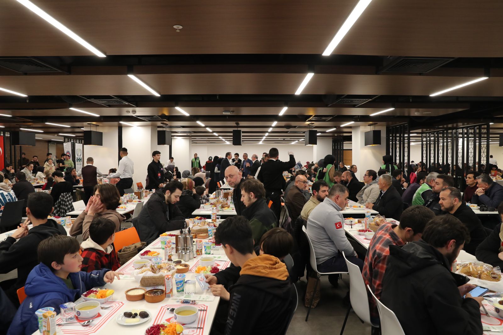 İftardan önce çocuklara yönelik çeşitli etkinlikler düzenlendi. Programda bir konuşma yapan Ali Yalçın, bir emek örgütü olmanın yanı sıra bir merhamet hareketi olduklarını ifade ederek, “İHH bizim çözüm ortağımız. Ne zaman bir iyilik yapmamız gerekiyorsa İHH ile birlikte düşündük, onlarla birlikte hareket ettik ve desteklerimizi, yardımlarımızı en doğru şekilde ulaştırdık. 25 bin yetim çocuğumuza destek olma noktasında ‘Her Sınıfın Bir Yetim Kardeşi Var’ kampanyasını İHH ile beraber omuzladık, o sevinci beraber yaşadık. Cilvegözü Sınır Kapısı’na beraber yürüdük, çünkü Halep’te bir soykırım tehlikesi vardı. Suriye’deki zindanlarda esir tutulan kadınların özgürlüğü için Kadınlar Komisyonumuz yine İHH ile beraber hareket etti. İHH, ülkemizdeki yardım kuruluşlarının sayılarının çoğalmasının ve kapasitelerinin artmasının örnekliğini teşkil ediyor. Onun için tüm İHH gönüllülerine teşekkür ediyorum” dedi.