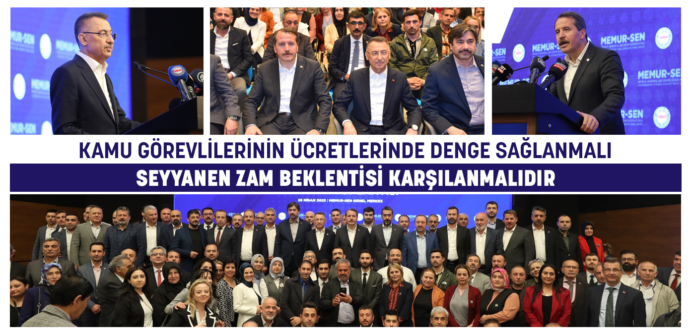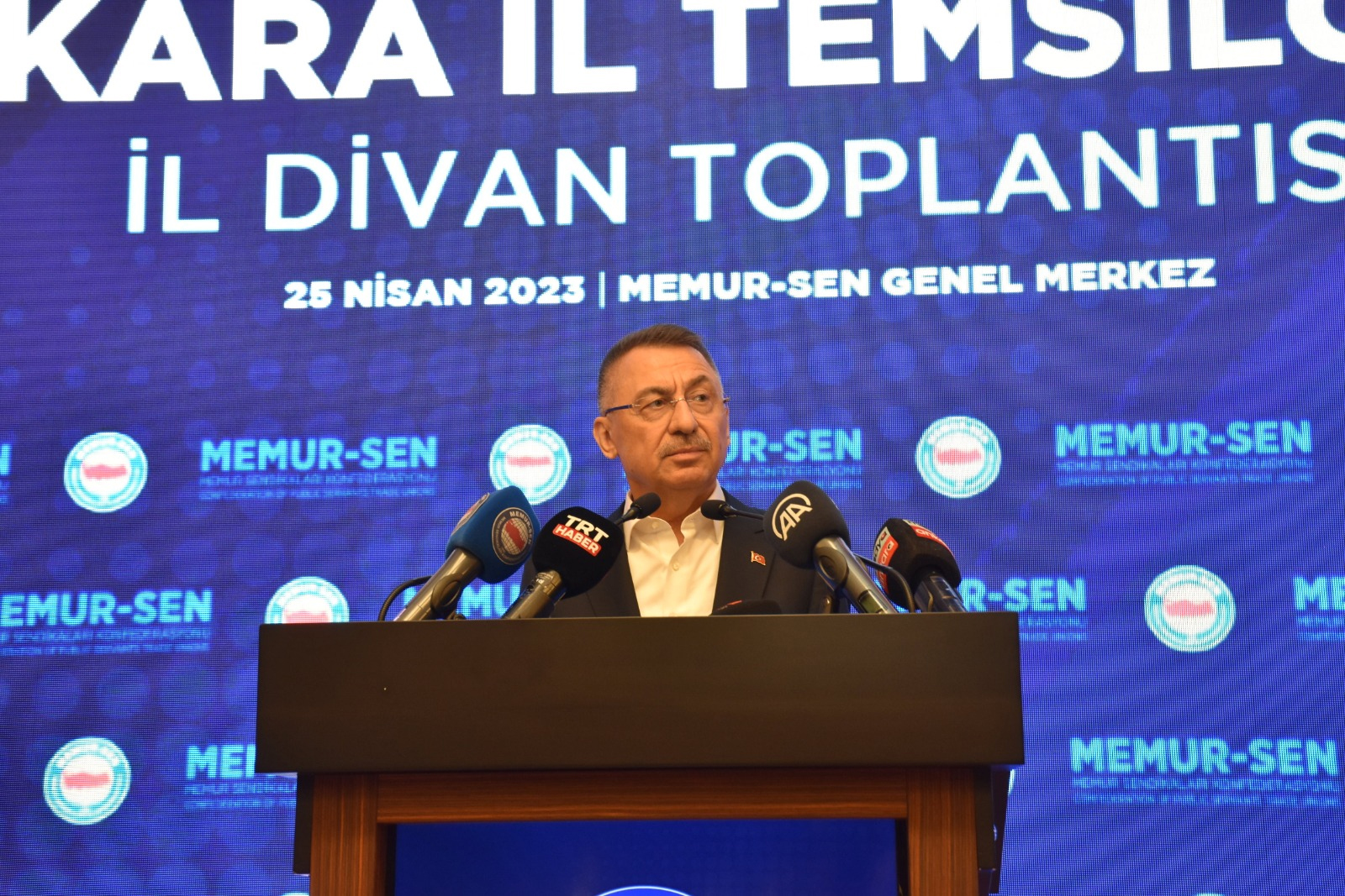Memur-Sen Genel Merkezi’nde yoğun bir katılımla gerçekleştirilen toplantıda konuşan Cumhurbaşkanı Yardımcısı Fuat Oktay, Memur-Sen’in 1 milyonu aşan üye sayısı ve 11 sendikasıyla Türkiye'nin en büyük sivil toplum örgütlerinden biri olduğunu belirterek, “Memur-Sen’in gücü sadece üye sayısıyla sınırlı değildir. Sadece ne kadar geniş bir coğrafyada faaliyet gösterdiğiyle de sınırlı değildir. Memur-Sen, çalışma hayatının sorunlarıyla ilgilendiği kadar, kamuda emek mücadelesini verdiği kadar demokrasimize, millî iradeye de dört elle sarılan, sahip çıkan bir örgütlenmedir. Kamu sendikacılığının uzun yıllar önemsenmeyen bir alan olarak kaldığını sizler bizlerden daha iyi biliyorsunuz. Bu eksikliğin bilinciyle, Cumhurbaşkanımız liderliğinde, kamu görevlileri sendikacılığının güçlenmesi için önemli reformlara imza attık. Attığımız adımlarda her zaman sizlerden gelen taleplere kulak verdik; her bir düzenlemeyi de yine sizlerle istişare içinde hazırladık. 28 Şubat’ın o karanlık günlerinde kamu personelinin üzerinde Demokles’in kılıcı gibi sallanan kamuda kılık ve kıyafet yasaklarını biz kaldırdık. Aynı şekilde, inancından ötürü ötekileştirilen, türlü mağduriyetler yaşayan kamu personelimizin imdadına biz koştuk ve inanç özgürlüğü ve haklarıyla ilgili sağlam güvenceler getirdik. Kamu görevlilerimizin toplu sözleşme hakkını anayasal güvenceye biz kavuşturduk. Disiplin kurullarında sendika temsilcilerine yer vermenin yanında disiplin cezalarına yargı yolunu açtık. Geçici personel statüsünü sözleşmeliye dönüştürdük ve sendikaya üye olabilme hakkı tanıdık” dedi.