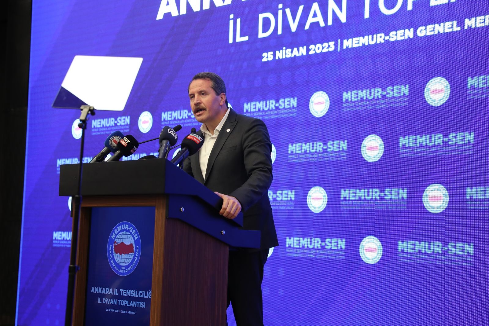 Eğitim-Bir-Sen ve Memur-Sen Genel Başkanı Ali Yalçın, ideolojik sendikacılığa karşı müzakereye ve mücadeleye dayalı hizmet sendikacılığını şiar edindiklerini kaydederek, “Mücadelemiz, emeğin değerini bulması, alın terinin karşılığını alması içindir. Mücadelemiz, aynı zamanda Türkiye’nin korku tünelinden çıkması, ham demokrasinin tam demokrasi olması, milletin değerleriyle uğraşanlara karşı milletin değerlerini baş tacı edip millet iradesinin yanında olmaktır” diye konuştu.