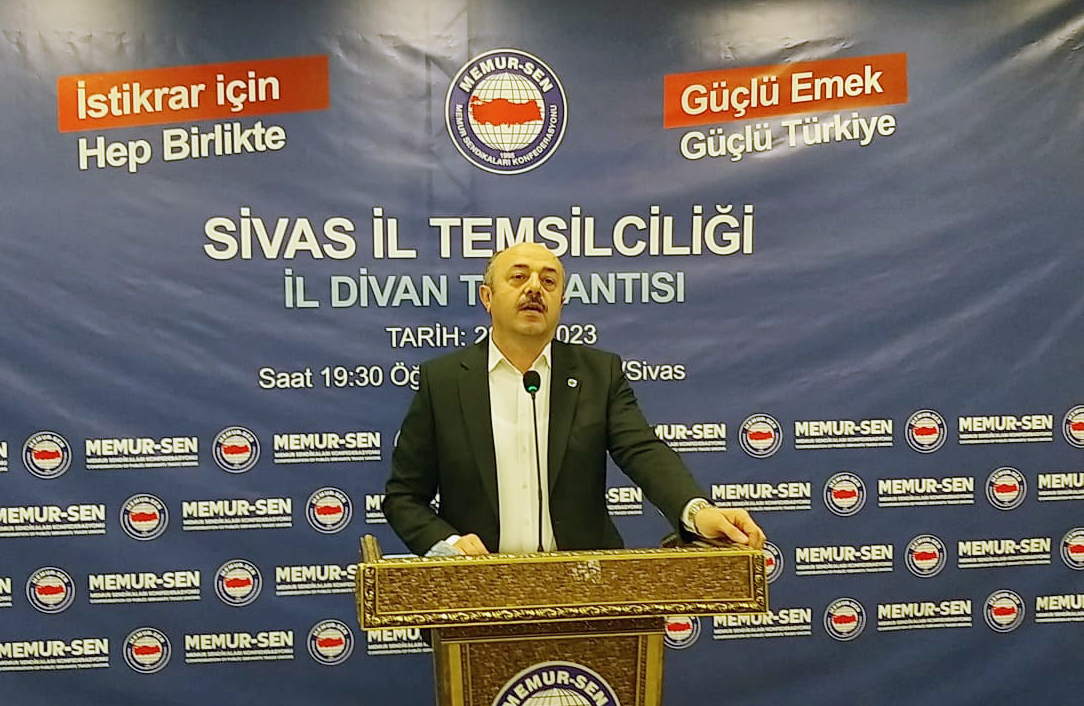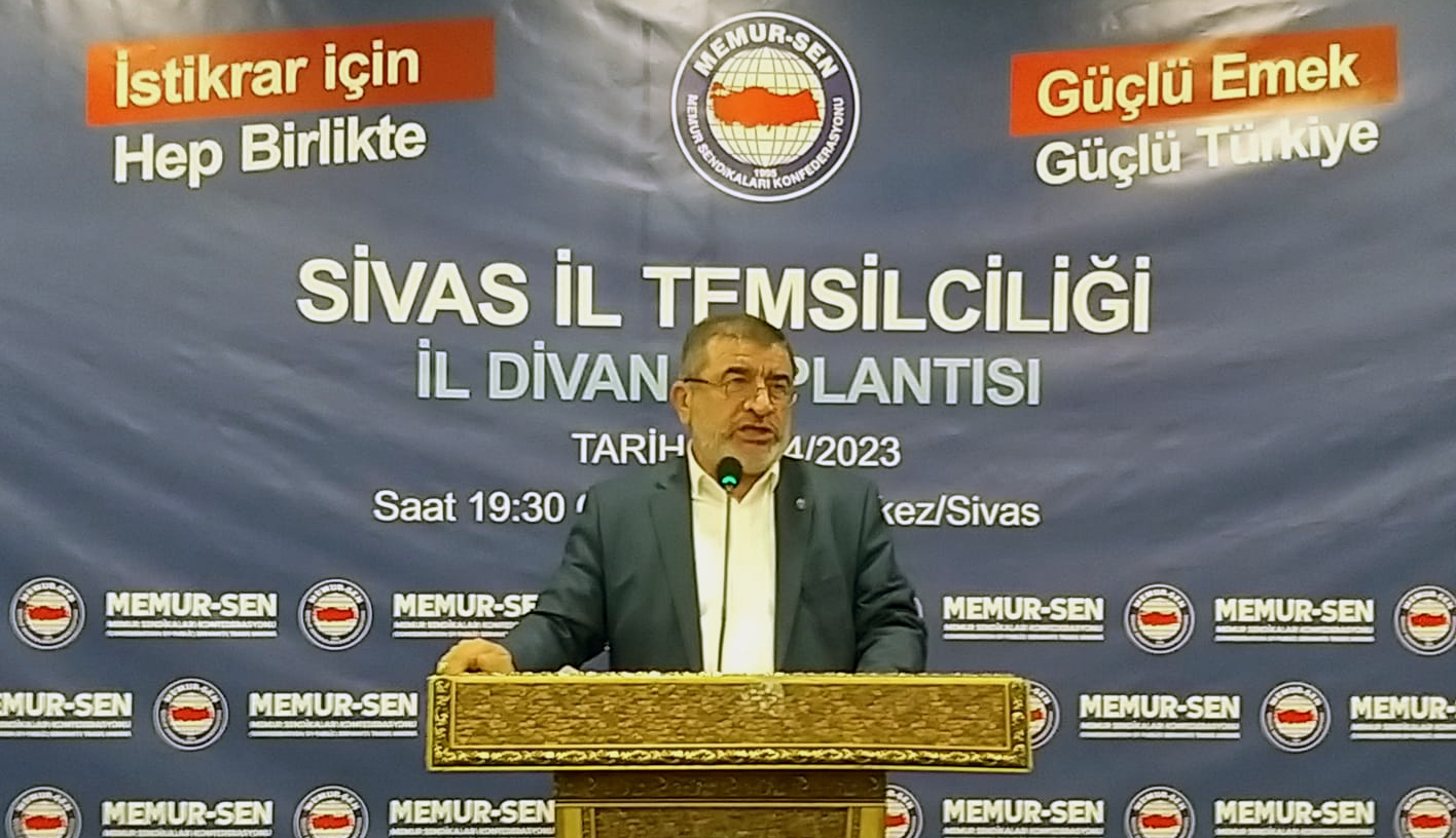Talat Yavuz, Memur-Sen Sivas İl Temsilciliği’nin divan toplantısına katılarak, gündeme dair açıklamalarda bulundu. Eğitim-Bir-Sen’in, Memur-Sen’in sadece bir emek hareketi olmadığına dikkat çeken Yavuz, “Evet, biz emek örgütüyüz; kamu görevlilerinin haklarını koruyan, artıran, çalışma şartlarını, özlük haklarını insan onuruyla bağdaştırmak için ter akıtan, ülkemizin erdemli sendikal aklıyız ama biz aynı zamanda milletin, ümmetin, insanlığın derdiyle dertlenmeyi emek mücadelesinden ayırmayan soylu bir sendikal hareketiz” dedi.