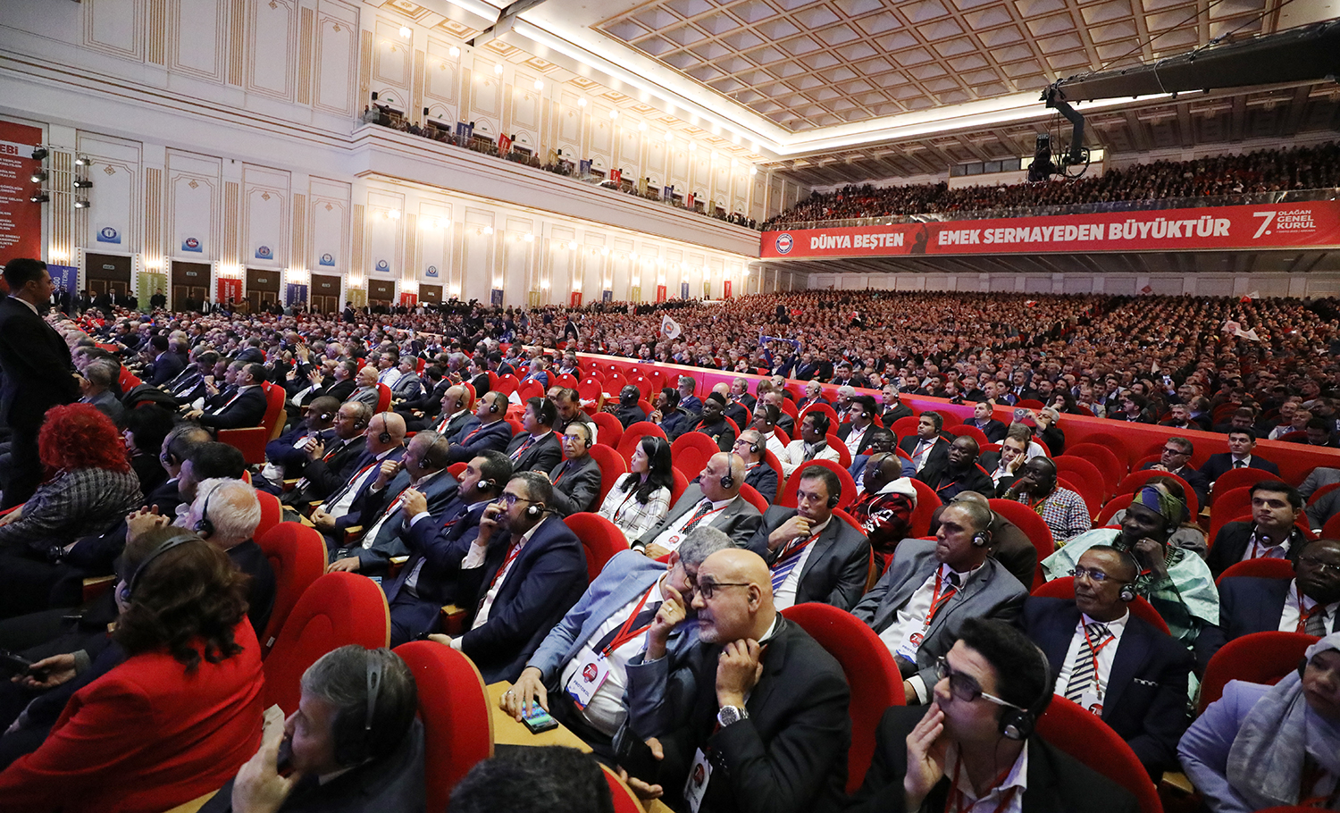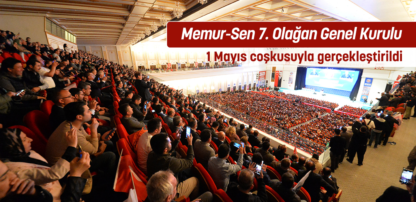 Memur-Sen 7. Olağan Genel Kurulu, 1 Mayıs Emek ve Dayanışma Bayramı’nda binlerce kamu görevlisinin katılımıyla Ankara’da yapıldı. Salonun hıncahınç dolduğu genel kurula Cumhurbaşkanı Recep Tayyip Erdoğan’ın yanı sıra, Cumhurbaşkanı Yardımcısı Fuat Oktay, Çalışma ve Sosyal Güvenlik Bakanı Vedat Bilgin, Büyük Birlik Partisi Genel Başkanı Mustafa Destici, AK Parti Genel Başkan Yardımcısı Belgin Uygur, Yeniden Refah Partisi Genel Başkan Yardımcısı Fatih Uğurlu, sivil toplum örgütü temsilcileri, yurt dışından emek örgütü temsilcileri ve çok sayıda davetli katıldı.