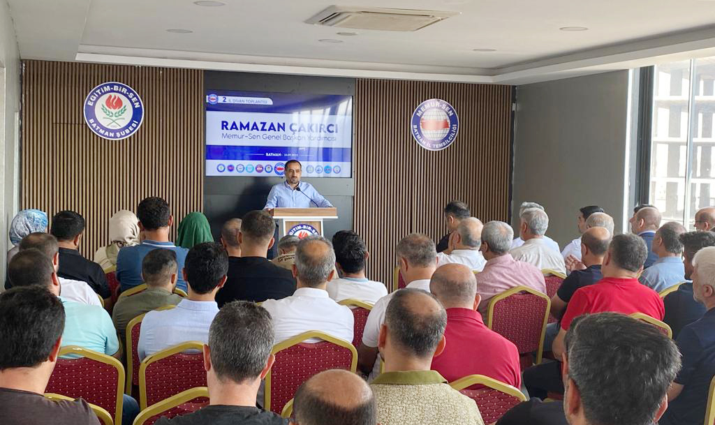 Eğitim-Bir-Sen Genel Başkan Yardımcısı Ramazan Çakırcı, Batman, Bitlis ve Muş şubelerinin il divan toplantısına katılarak, eğitim gündemine ve sendikal çalışmalara ilişkin değerlendirmelerde bulundu. Ramazan Çakırcı, eğitim çalışanlarının işinin başına sorunlarından arınmış bir şekilde gidebilmelerinin sağlanması, çalışma şartlarının iyileştirilmesi yönünde adım atılması, çözüm odaklı yaklaşımın sürdürülmesi gerektiğini söyledi.