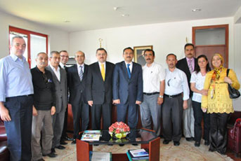 Ahmet Gündogdu, daha sonra, beraberindeki heyetle birlikte, Abant Izzet Baysal Üniversitesi Rektörü Prof. Dr. Hayri Coskun ve Tip Fakültesi Dekani Prof. Dr. Hasan Koçoglu’nu ziyaret etti.