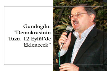 Türkiye’nin demokratiklesmesi için paketin önemli oldugunu anlatan Gündogdu, “Türkiye’nin dünya demokrasilerindeki yerine baktigimizda, ikinci ligde oldugunu görüyoruz. Insallah 12 Eylül’de bu paketle birinci lige çikacagiz. Anayasanin tüm eksiklerini gideren bir degisiklikle de süper lige çikacagiz” ifadelerini kullandi.