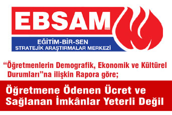 Egitim-Bir-Sen Stratejik Aras- tirmalar Merkezi (EBSAM), Ögretmenler Günü dolayisiyla “Ögretmenlerin Demografik, Ekonomik ve Kültürel Durumlari”na iliskin bir rapor hazirladi.
